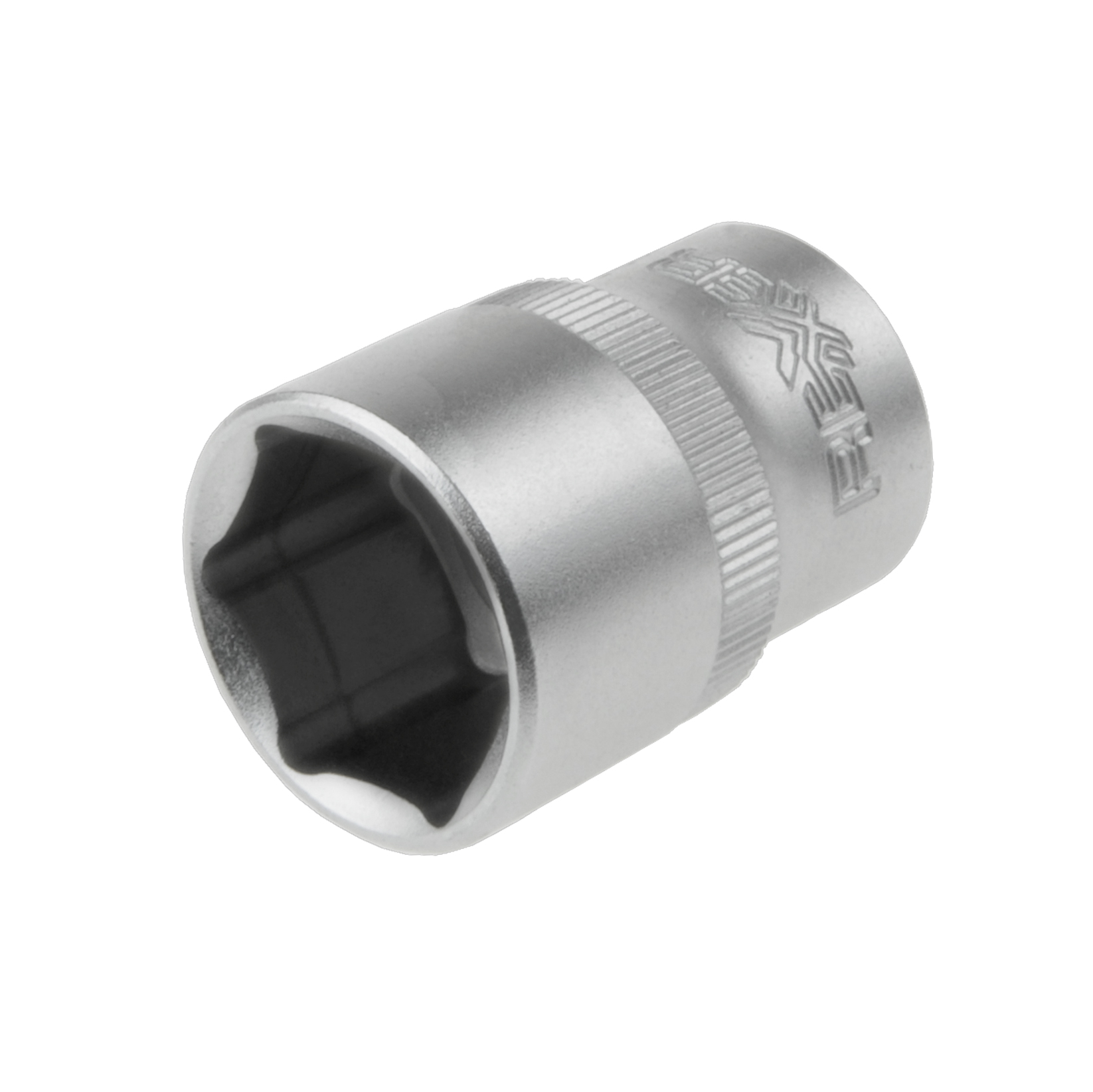 The ratchet hex socket is one of the most commonly used accessories in the tool kit. This is a special attachment that fits hand ratchets. The ratchets allow you to turn bolts, nuts and other components with minimal handle movement, making it easier to work in confined spaces. Hex sockets have six edges that fit perfectly into hexagonal bolt or nut heads. The cap is made of high-quality **CrV steel** resistant to damage and mechanical deformation. Sockets are a popular choice in workshops, garages, and among mechanics and DIYers because they allow you to tighten and loosen components with minimal effort and a small working area.