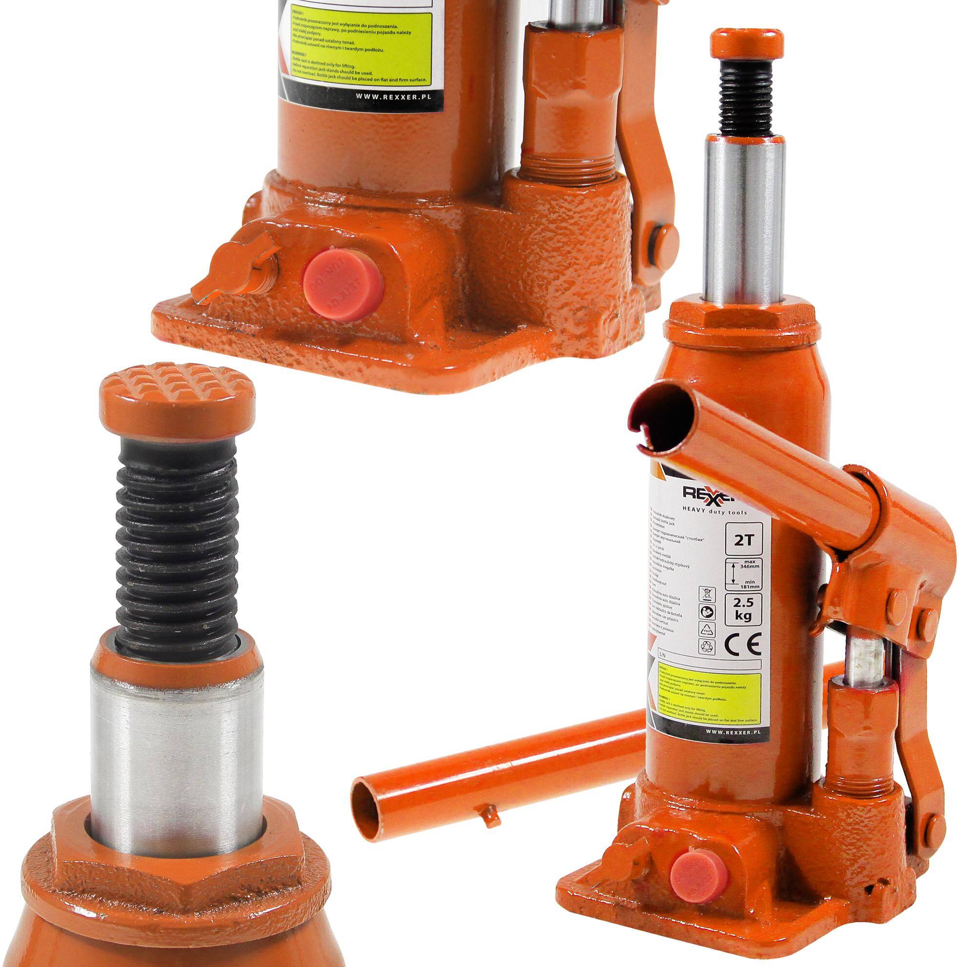The hydraulic pillar lift allows you to lift weights of up to 2 tons. It is indispensable in work that requires the use of high vertically directed force, e.g. when we want to lift one side of the car or lift another machine.