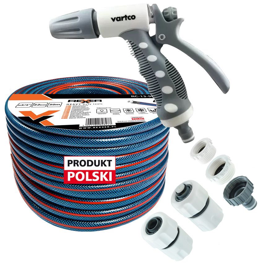 4-ply garden hose 3/4" 50 m + connectors + plastic spray gun