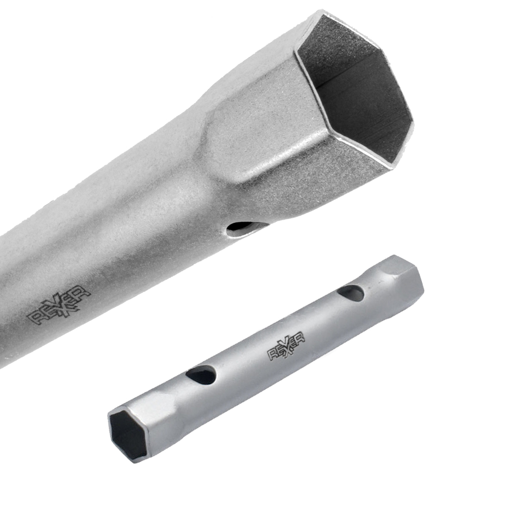 A pipe socket wrench is a tool with a long, tubular shank tipped with hexagon sockets sized to fit bolts and nuts. It is particularly useful for rotating components in hard-to-reach places, making it ideal for installation work. Made of steel resistant to damage and corrosion, it ensures durability and strength.