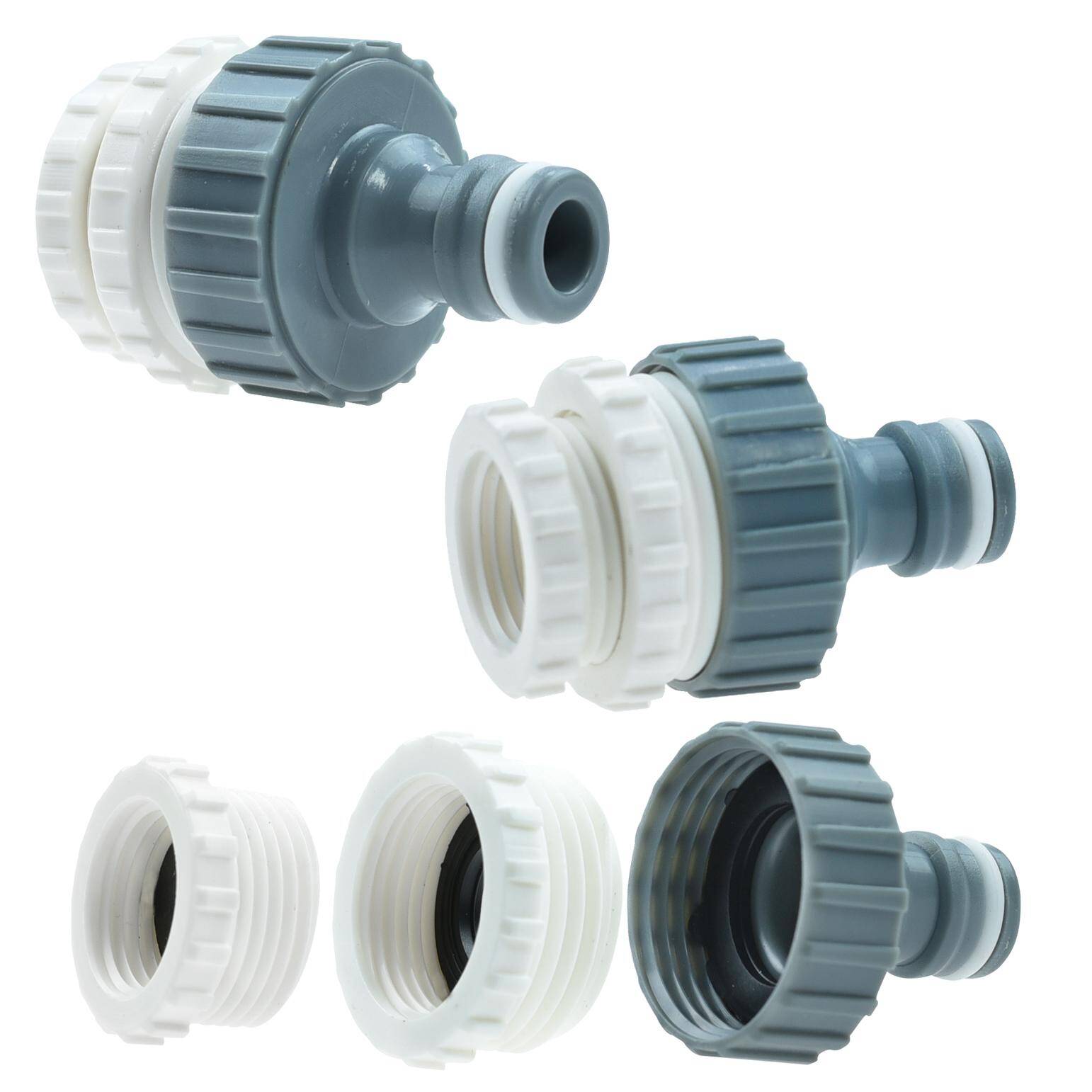 Faucet connection with 1″ – 3/4″ – 1/2″ female thread, made of strong plastic resistant to weather conditions and UV radiation. Gasket and sealing oring included. Connector compatible with other quick connectors available on the market.