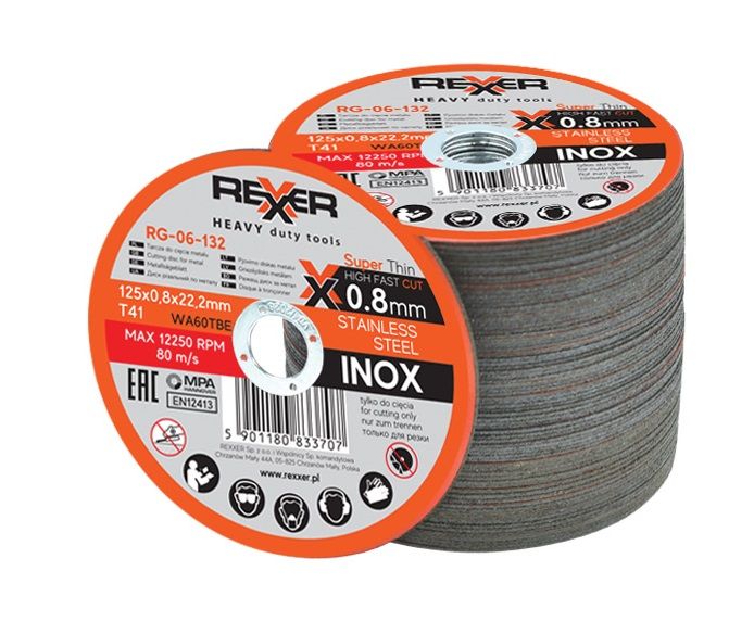 The 125 x 0.8 mm alumina discs are an indispensable and one of the most popular tools for professionals and hobbyists who are looking for an effective way to cut INOX stainless steel with precision. The high-quality corundum blade provides reliability and durability, allowing you to cut stainless steel accurately and efficiently without damaging it. It is ideal for cutting both thin and thick steel materials. The thin blade makes cutting easy and precise, minimizing material waste. Whether you’re dealing with small workshop projects or larger construction tasks, this shield will meet your expectations. Made of high-quality materials and reinforced on both sides, it is extremely durable and resistant to wear. This means that the blade has a longer life and performance, saving you time and money. Whether you’re a seasoned professional or a DIY beginner, this blade will give you confidence and precision when cutting. The set contains 50 pcs of the same discs (RG-06-132).
