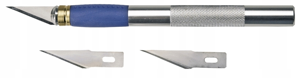 Modeling knife designed for precise cutting of paper, cardboard, leather and similar materials. Replaceable blades made of stainless steel guarantee a sharp and even cut. The tool has a strong metal housing and a soft Softgrip coating on the handle, which ensures a secure grip and comfort of work.
