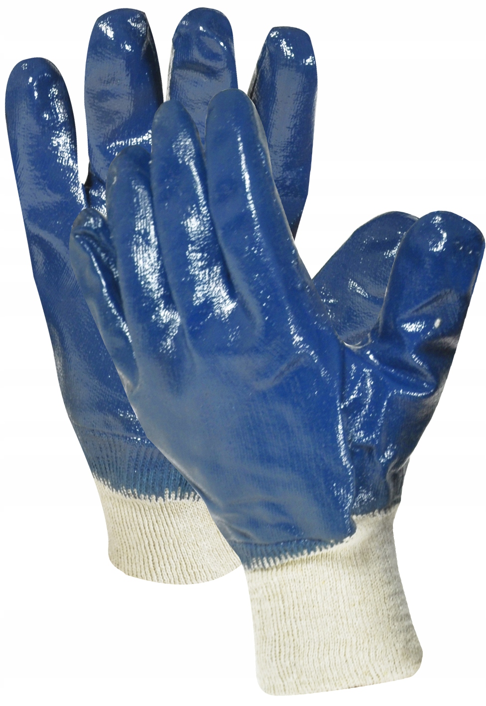 The gloves are made of thick nitrile in blue. Finished with a welt.