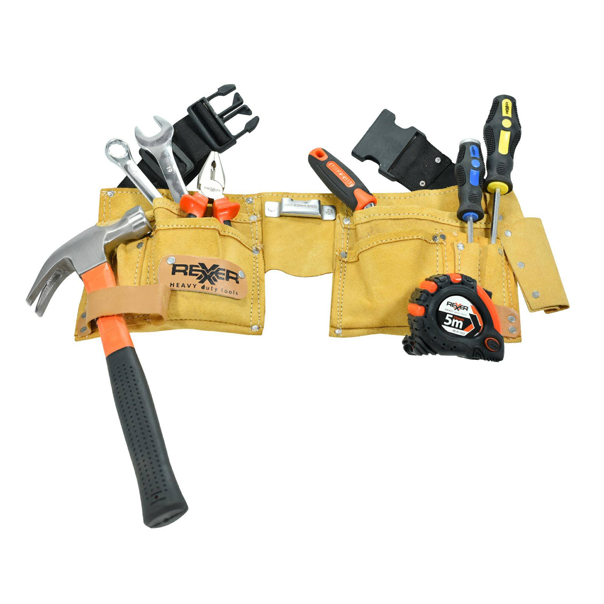 Pas monterski to wytrzymały i funkcjonalny pas narzędziowy przeznaczony dla monterów, majsterkowiczów oraz pracowników budowlanych. Wykonany z trwałej skóry, zapewnia odporność na uszkodzenia oraz wygodę użytkowania. Dzięki 11 kieszeniom o zróżnicowanych rozmiarach oraz uchwytom na młotek i miarę zwijaną, umożliwia szybki i łatwy dostęp do najpotrzebniejszych narzędzi.