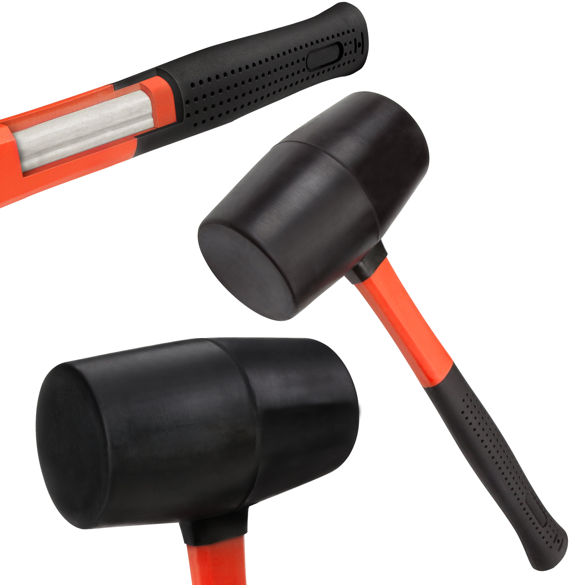 The carbon fiber handle rubber mallet is a tool that is designed to perform precision work in a variety of industries such as industry, construction, repair, and crafts. This mallet combines the advantages of a rubber impact and the lightness of a carbon fiber handle. The carbon fiber shaft is an advanced material with a very low weight, but at the same time characterized by exceptional strength and stiffness. This makes the hammer very lightweight, which makes it easy to use and reduces user fatigue during long periods of work. The hammer head is made of flexible rubber with a special design to absorb impact energy and provide optimal impact effects. The rubber material also protects the work surface from damage, which is especially important when working with delicate materials such as glass, ceramics or wood. The carbon fiber handle rubber mallet is a versatile tool that has been used in many fields, from repair work to professional use in industry and arts and crafts. Thanks to its design, it is a good choice for those looking for an efficient, lightweight and durable tool for precise strikes.
