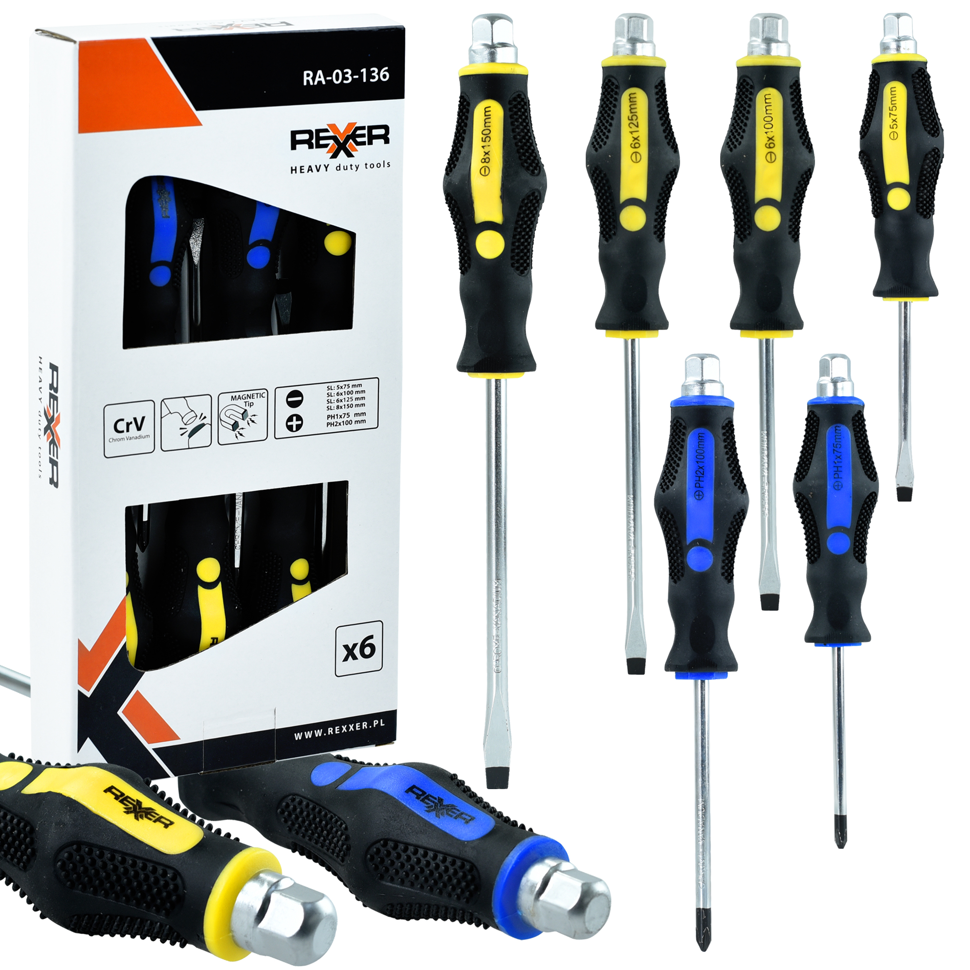 These screwdrivers are made of high-quality CrV steel, which ensures their durability and resistance to damage. The magnetic tip makes it easier and faster to grip and hold screws, making work faster and easier. In addition, the rubberized, two-component handle with appropriate profiling fits well in the hand, which allows for precise and comfortable work even for long periods of time. Striking screwdrivers are tools that are sure to last a long time, thanks to their durability and strength. This is a set that should be in the equipment of every DIY enthusiast who appreciates practicality, versatility and quality.