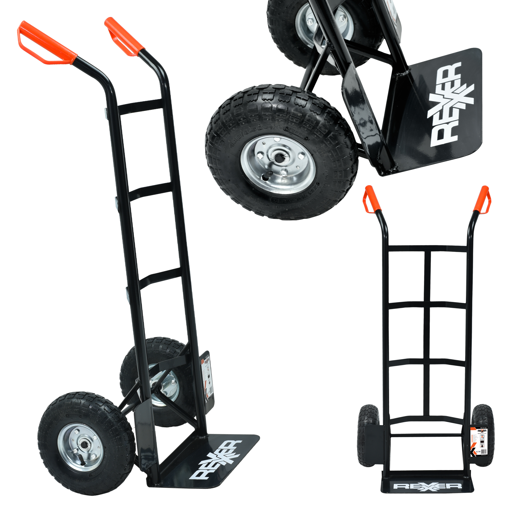 The trolley is made of high-quality welded steel profiles, which guarantees durability and resistance to mechanical damage. In addition, it has a 350 x 180 mm steel plate that is thick enough to hold heavy loads without deforming. These features make the stroller not only durable, but also safe to use.
