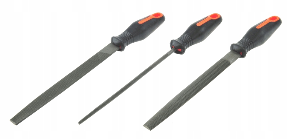 This set of files is a useful tool for professionals and DIYers alike. Thanks to it, the processing of various metal elements will be carried out efficiently. You have three types of tips at your disposal, so you can easily choose the right one for the job you do. The files are made of carbon steel for long-lasting use. They have a contoured, two-material, rubberized handle, thanks to which even long work is safe and comfortable.