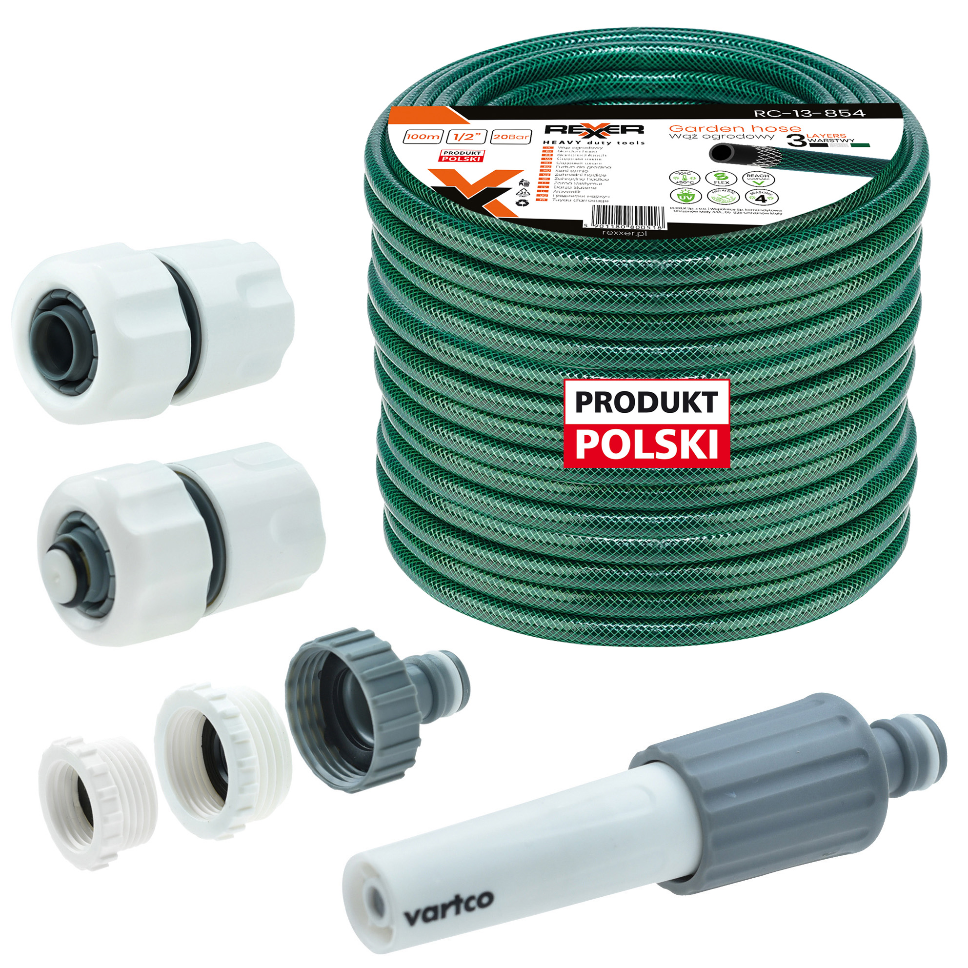 3-WARSTWOWY WĄŻ OGRODOWY 1/2″ 100 M+ ZŁĄCZKI + PLASTIKOWA DYSZA ZRASZAJĄCA