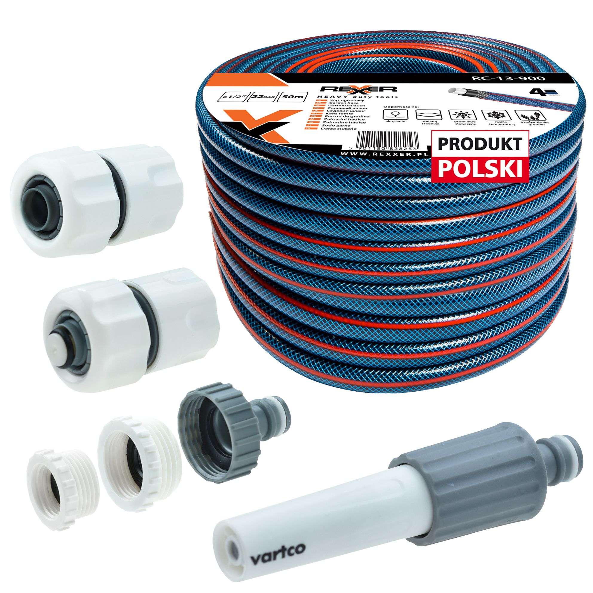 4-WARSTWOWY WĄŻ OGRODOWY 1/2″ 50 M + ZŁĄCZKI + PLASTIKOWA DYSZA ZRASZAJĄCA