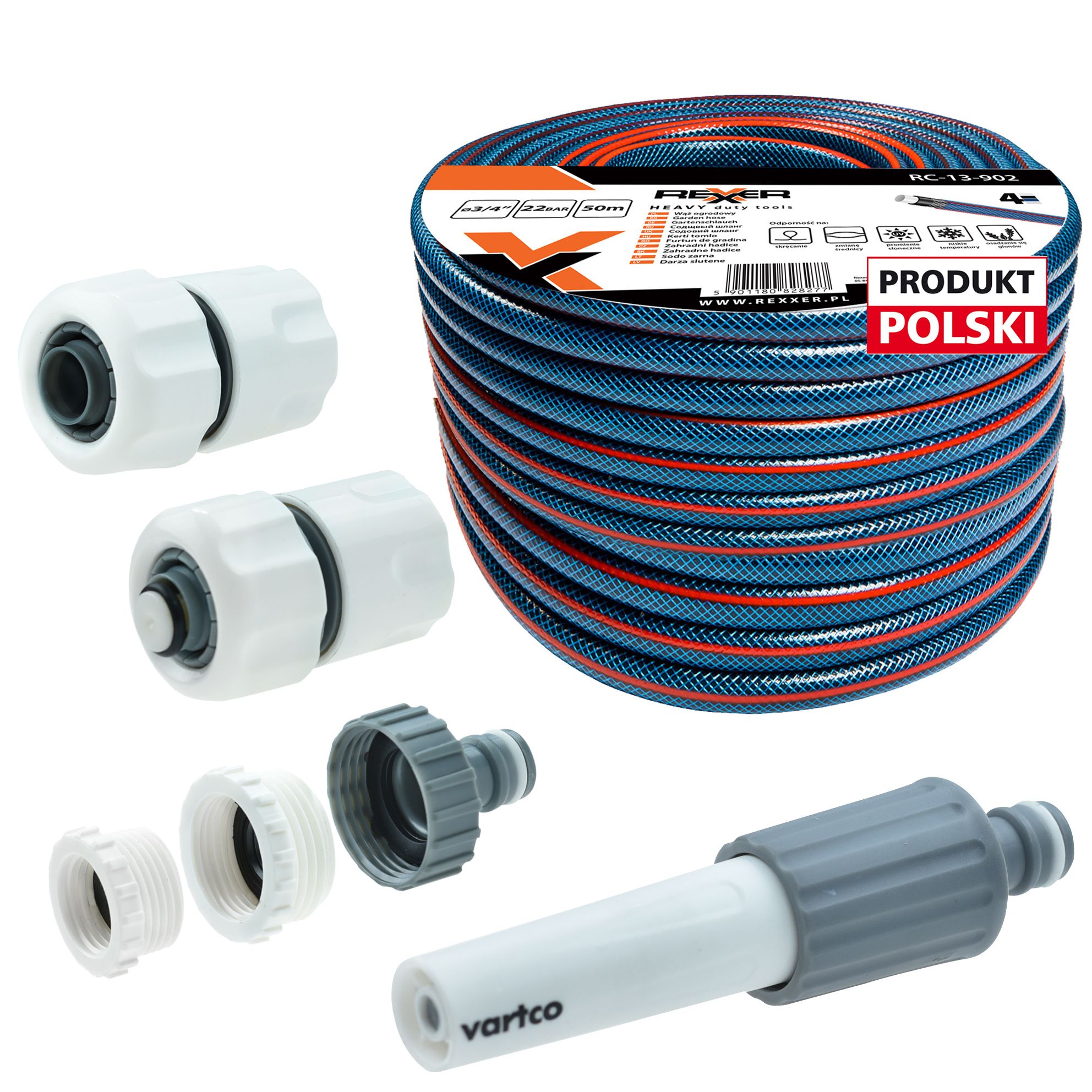 4-warstwowy wąż ogrodowy 3/4" 50 m + złączki + dysza zraszająca