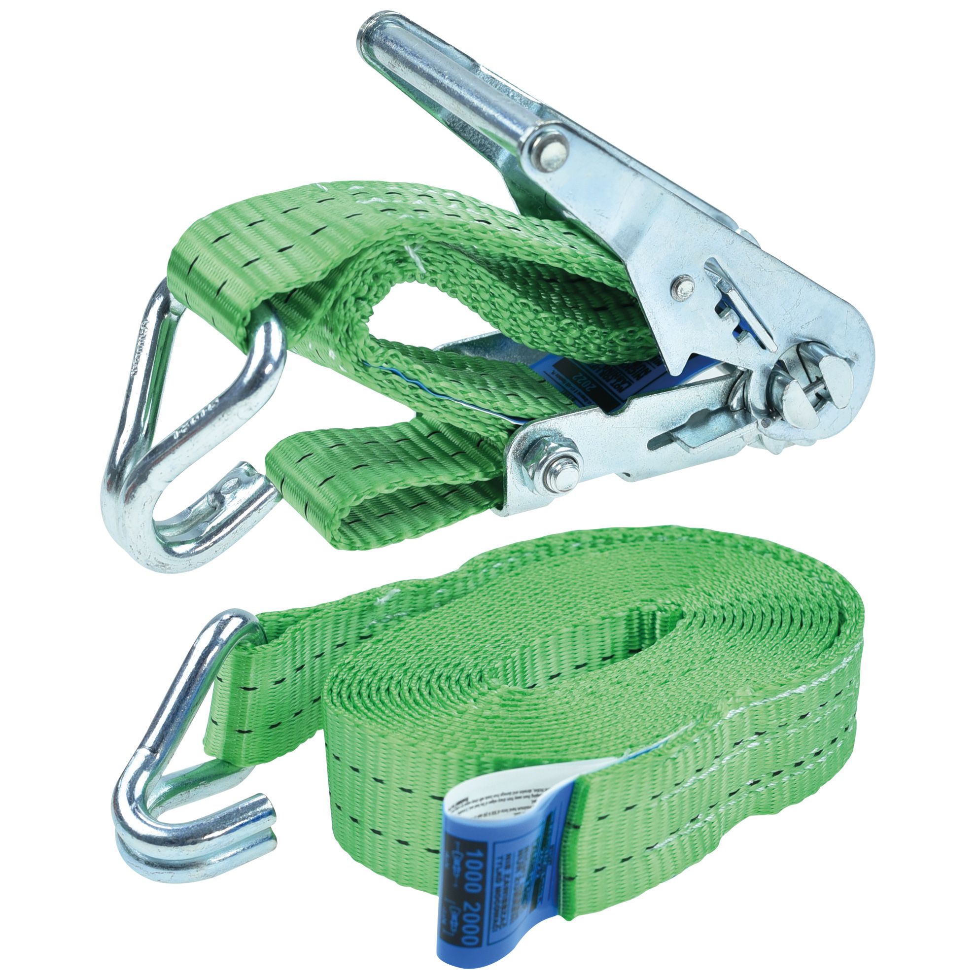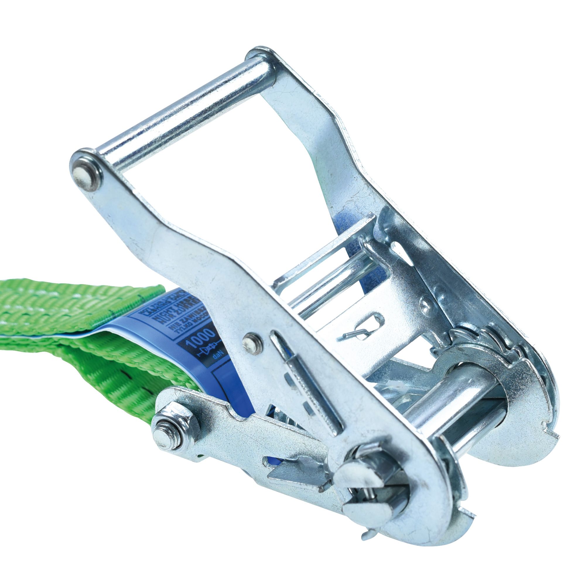 Pas transportowy z napinaczem, jest najczęściej stosowanym pasem w transporcie. To solidny i pewny sposób na zabezpieczenie ładunku. Długość to 5 metrów. Pasy zostały wyprodukowane na terenie Unii Europejskiej zgodnie z normą EN 12195-2 2001. Składa się z dwóch części: napinacza – grzechotki i części opasującej. Grzechotka posiada wygodną rączkę dopasowaną do ręki i wysokiej jakości system zapadkowy. Zakończona wytrzymałym hakiem. Część opasująca to przede wszystkim wytrzymała taśma odporna na oleje, smary oraz różne niesprzyjające warunki atmosferyczne, zakończona wytrzymałym hakiem. Na każdej części pasa znajdują się niebieskie metki informujące o produkcie oraz instrukcja montażu.