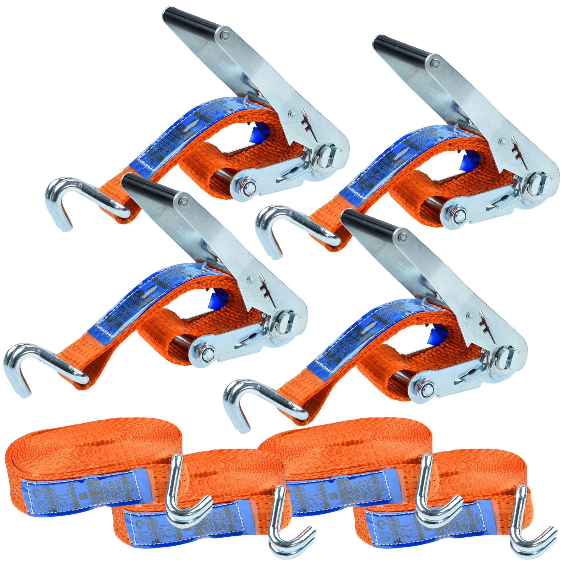 Pasy zostały wyprodukowane w Unii Europejskiej i spełniają normę EN 12195-2 2001. Składają się z dwóch elementów: napinacza (grzechotki) z wygodną, ergonomiczną rączką oraz wysokiej jakości systemem zapadkowym, zakończonego wytrzymałym hakiem oraz części opasującej – odpornej na oleje, smary i niekorzystne warunki atmosferyczne taśmy poliestrowej, zakończonej również hakiem.