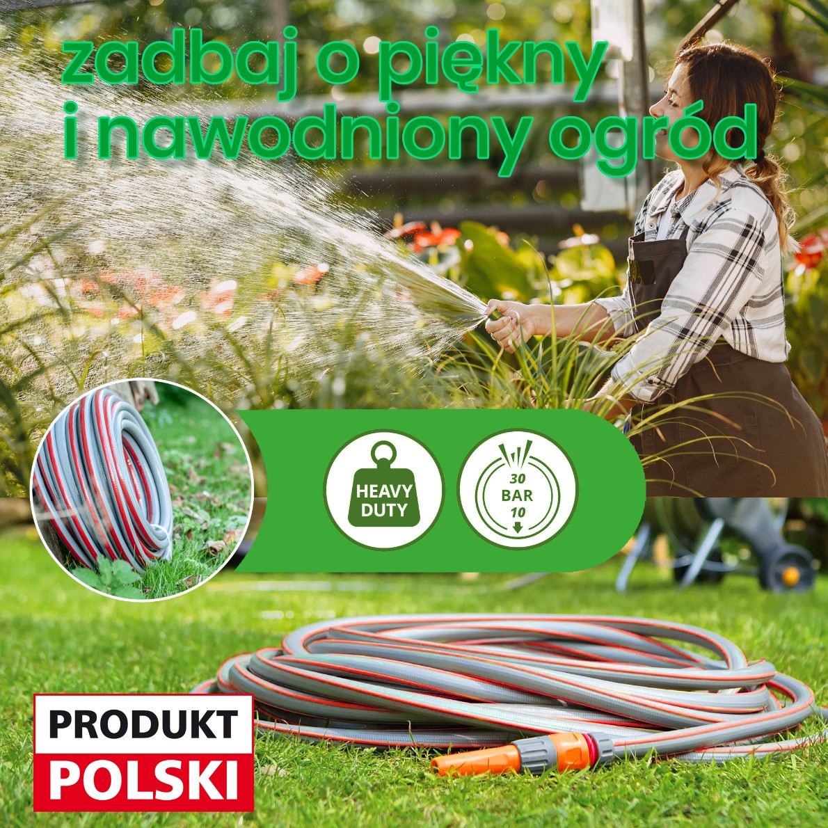 6-WARSTWOWY WĄŻ OGRODOWY 1/2″ 30 M + ZŁĄCZKI + WIELOFUNKCYJNY PISTOLET ZRASZAJĄCY