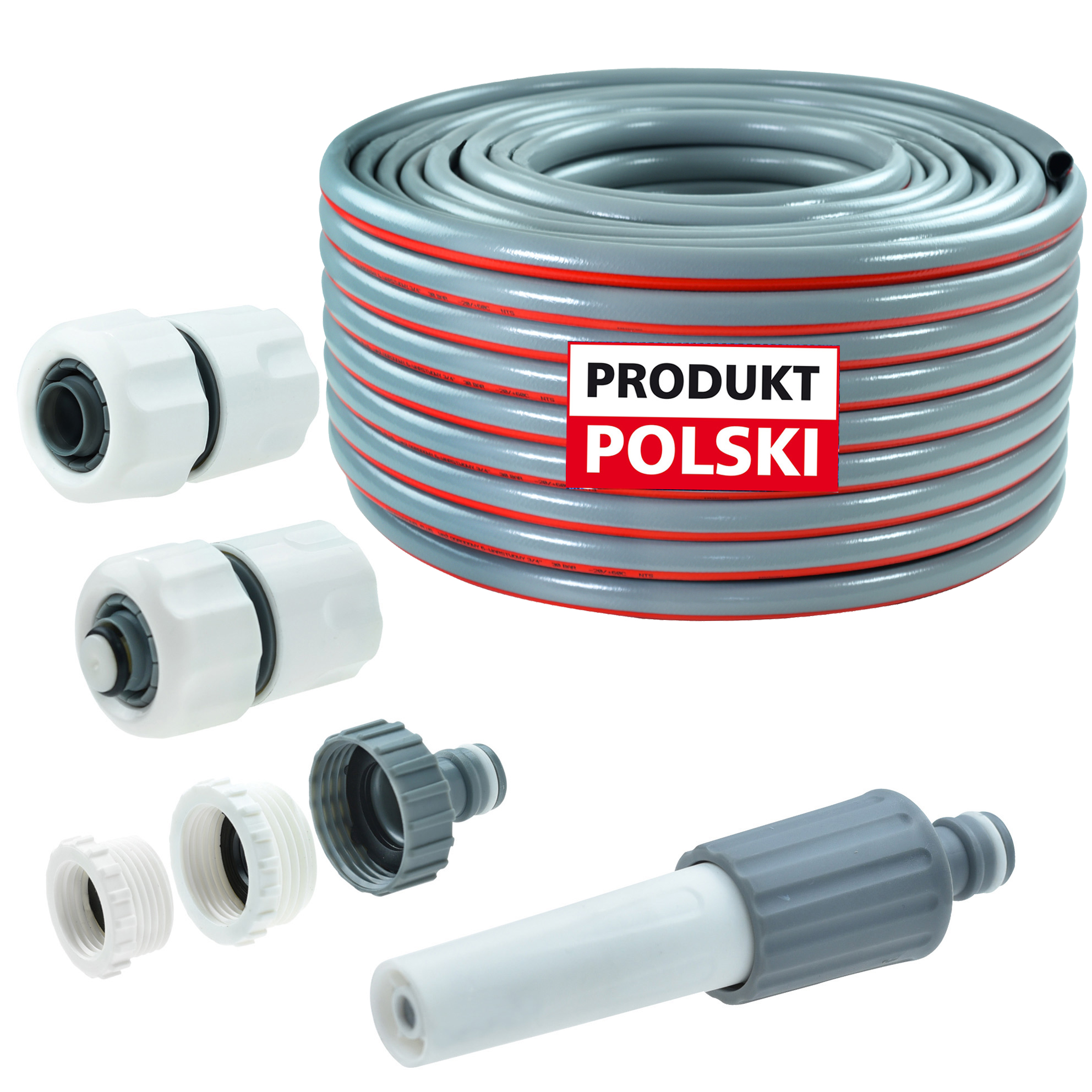 6-WARSTWOWY WĄŻ OGRODOWY 3/4″ 100 M + ZŁĄCZKI + PLASTIKOWA DYSZA ZRASZAJĄCA