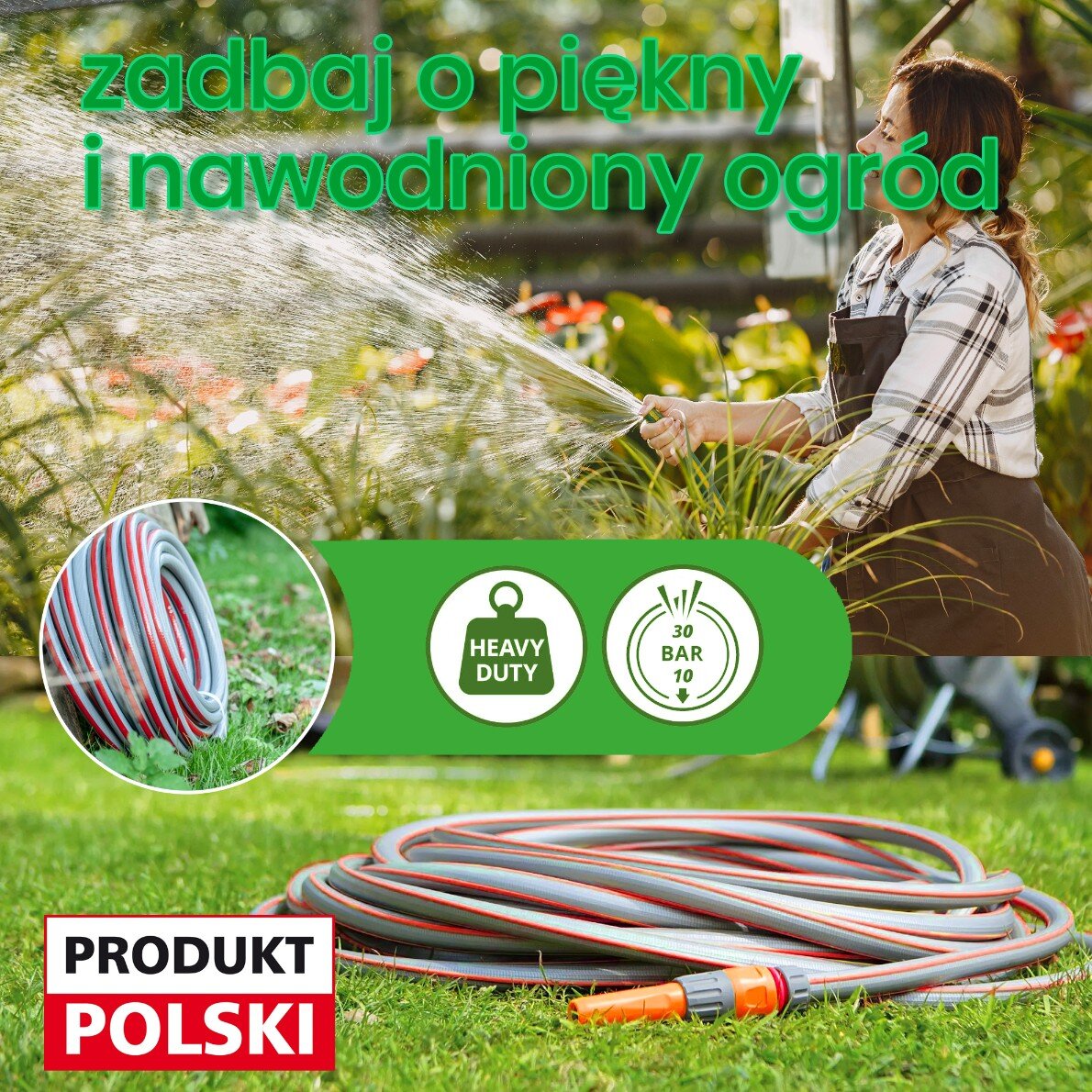 6-WARSTWOWY WĄŻ OGRODOWY 3/4″ 30 M + ZŁĄCZKI + PISTOLET ZRASZAJĄCY