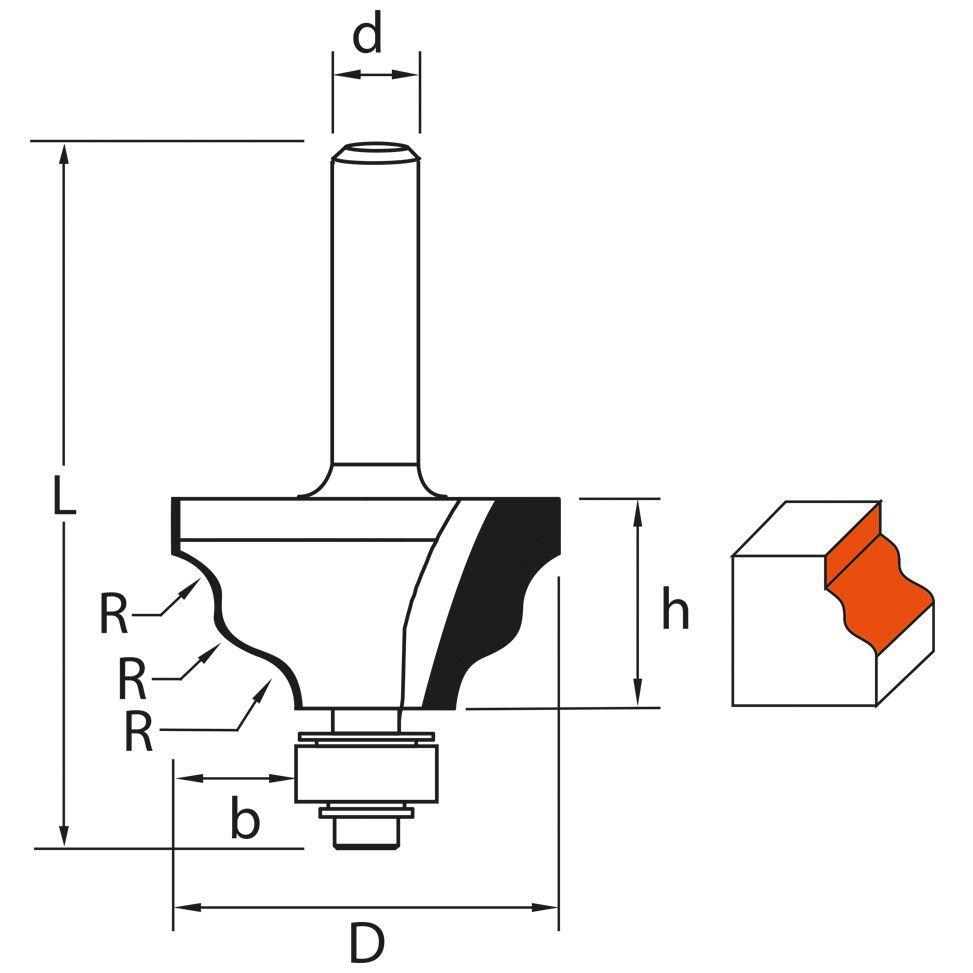 Frez kształtowy do drewna z łożyskiem 8 MM D: 28,8 MM h: 15,9 MM