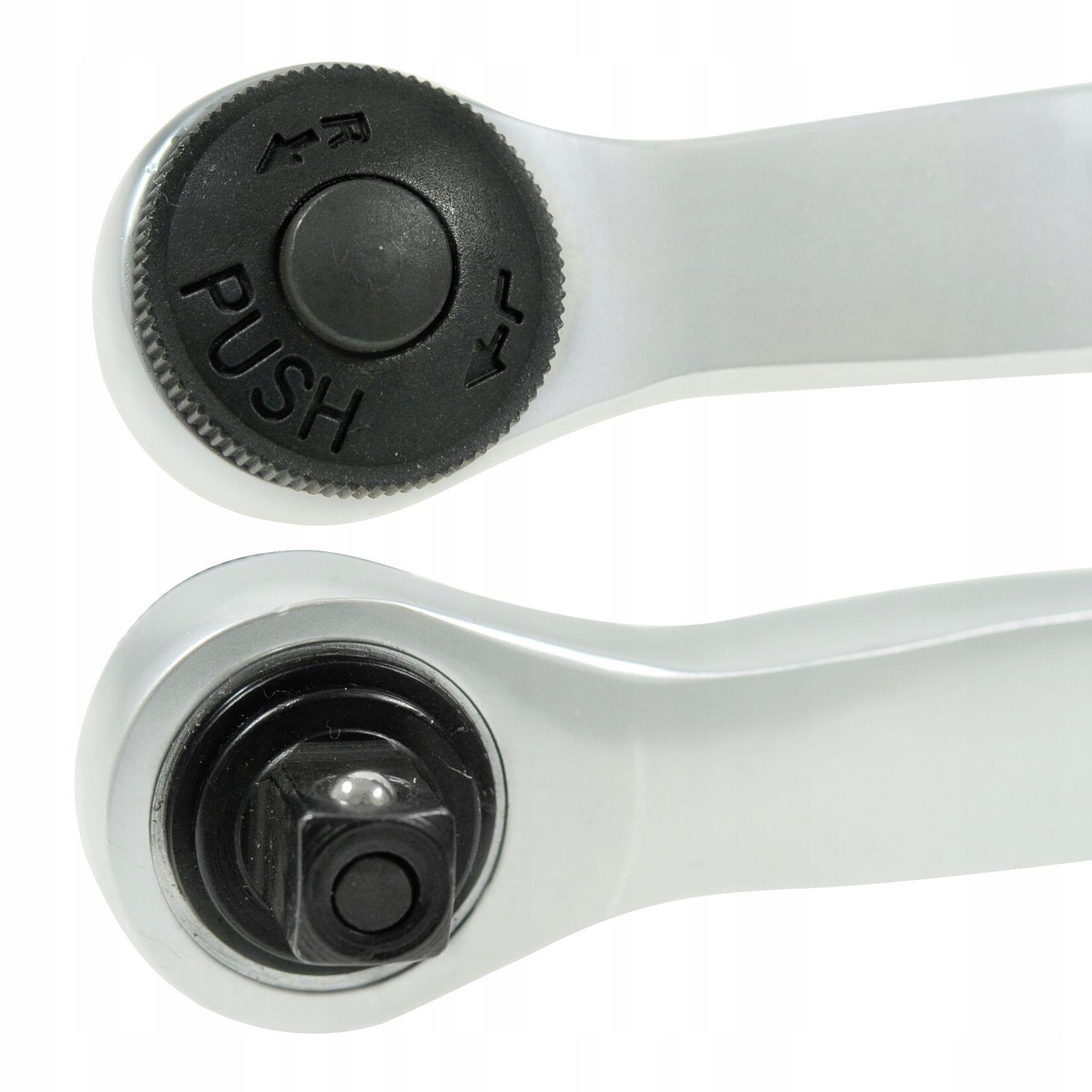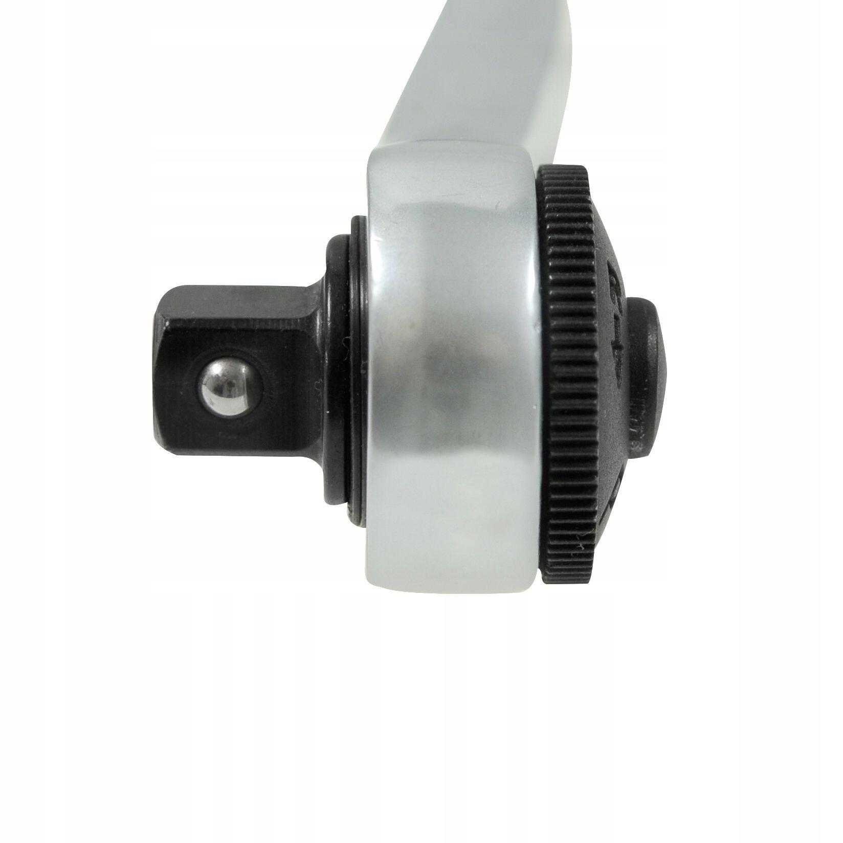 Grzechotka to narzędzie ręczne, które jest często wykorzystywane w warsztatach samochodowych, mechanikach i innych dziedzinach, gdzie wymagane jest dokręcanie lub odkręcanie śrub, nakrętek lub innych elementów przy użyciu momentu obrotowego. Grzechotka jest rodzajem klucza nasadowego, który umożliwia obracanie śrubami w jednym kierunku, a następnie automatyczne przeskoczenie do kolejnej pozycji bez konieczności odkręcania klucza. To oszczędza czas i wysiłek, ponieważ nie trzeba ciągle odkręcać i ponownie dociskać klucza przy każdym obrocie. Rozmiar 1/2″ odnosi się do rozmiaru napędu klucza, czyli wielkości gniazda, które pasuje do odpowiednich nasadek i wkładów, co czyni ją bardziej odpowiednią do większych i bardziej wymagających zastosowań. Odgięta konstrukcja grzechotki oznacza, że główny trzon jest ustawiony pod kątem do rękojeści. Ta konstrukcja umożliwia łatwiejszy dostęp do śrub w trudno dostępnych miejscach, gdzie prosty trzon grzechotki nie mógłby zmieścić się.