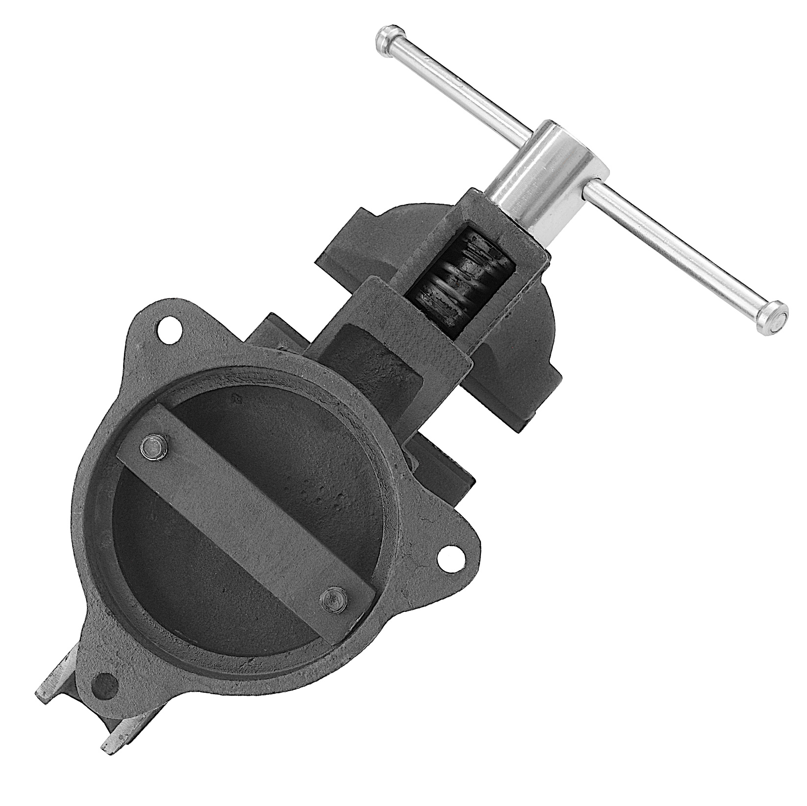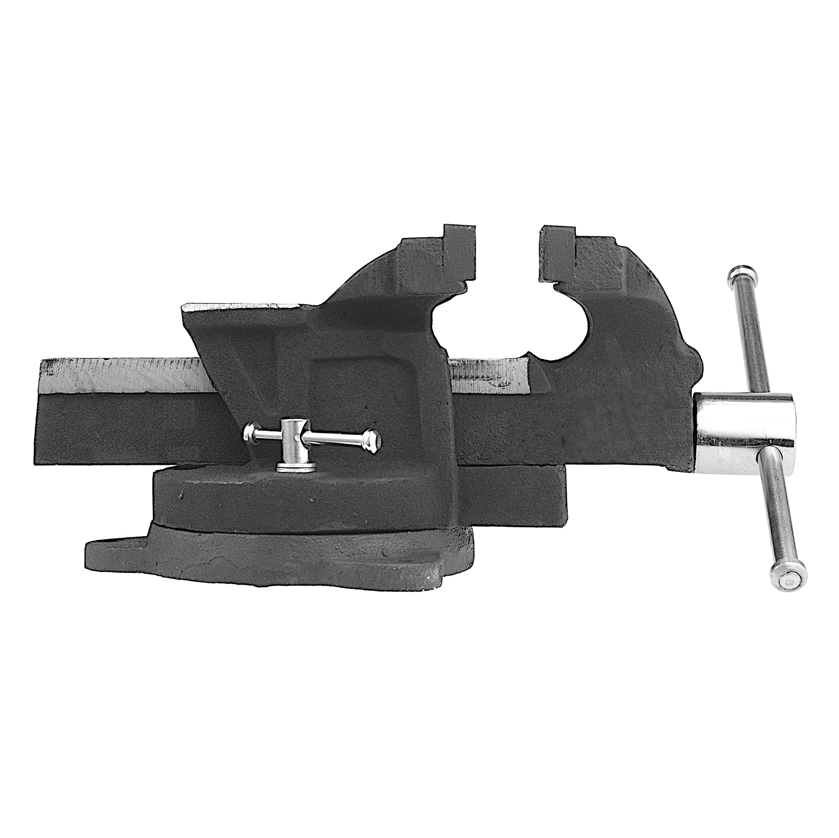 Imadło można solidnie przytwierdzić do stołu roboczego za pomocą otworów w szerokiej i solidnej podstawie. Bardzo wytrzymała i sztywna konstrukcja imadła zapewnia przenoszenie dużych obciążeń oraz gwarantuje długi czas eksploatacji. Imadło jest odporne na złe warunki atmosferyczne. Dzięki podstawie z trzema otworami do montażu oraz mocnej prowadnicy, imadło pozostaje niezwykle stabilne, nawet w momencie pracy przy dużych obciążeniach, pozostając przy tym w pełni obrotowe.