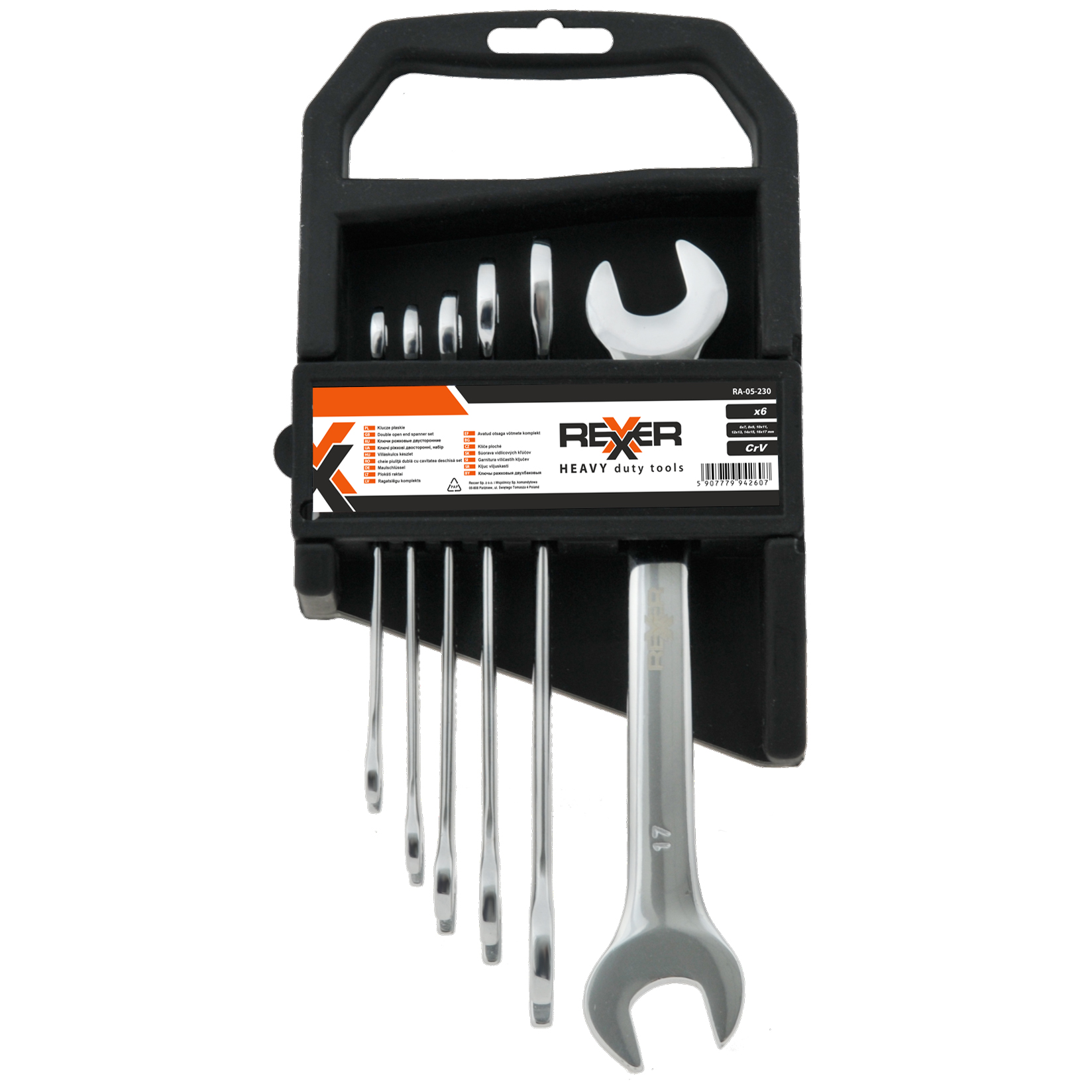 Klucze Płaskie Dwustronne 6-17 mm, 6 sztuk, CRV REXXER