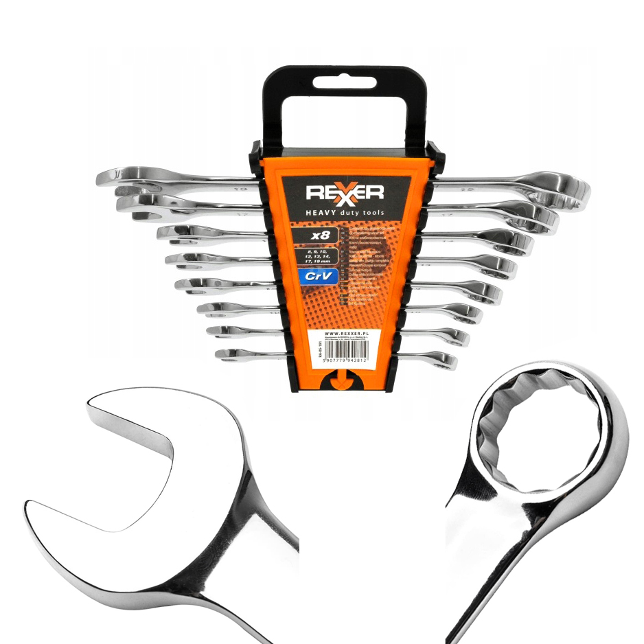 KLUCZE PŁASKO-OCZKOWE 8-19 MM 8 SZTUK CRV