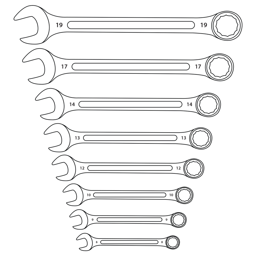 Klucze płasko-oczkowe 8-19 mm 8 sztuk CRV