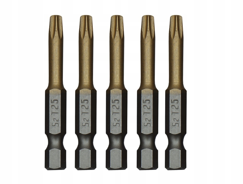 Zestaw 5 końcówek wkrętakowych TORX TX25 o długości 50 mm, stworzonych z wytrzymałej stali S2, gwarantującej długą żywotność i odporność na uszkodzenia mechaniczne. Dzięki standardowemu uchwytowi HEX 1/4″ pasują do większości elektronarzędzi oraz ręcznych wkrętaków.