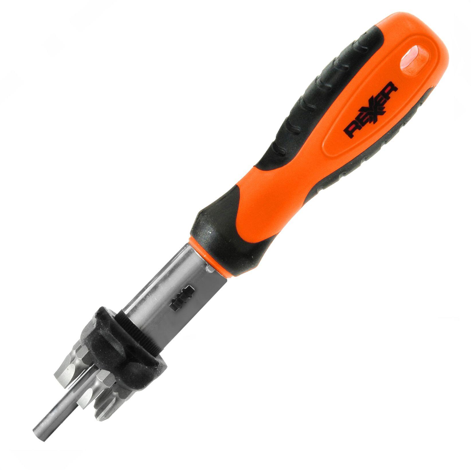 Ten 14-częściowy zestaw końcówek wkrętakowych i nasadek z uchwytem z grzechotką to uniwersalne narzędzie do prac naprawczych, montażowych i demontażowych. Uchwyt z mechanizmem grzechotkowym umożliwia efektywną pracę nawet w ograniczonej przestrzeni, pozwalając na obrót wkrętaka w obu kierunkach (przy dokręcaniu i odkręcaniu śrub). Zestaw zawiera końcówki wkrętakowe płaskie i krzyżowe oraz nasadki o rozmiarach od 7 do 13 mm. Każda końcówka jest przystosowana do konkretnego typu śruby lub wkrętu, co zapewnia wszechstronność zastosowania. Jest to praktyczne narzędzie do mechaniki, elektroniki, stolarstwa i majsterkowania, umożliwiające szybkie i skuteczne wykonywanie zadań oraz zapewniające solidne połączenia śrubowe.