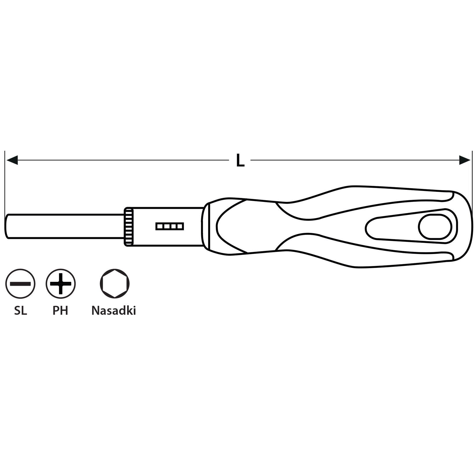 • Końcówka wkrętakowa: SL4, SL5, SL6, PH1, PH2, PH3
