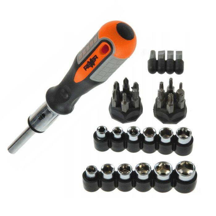 Końcówki wkrętakowe i nasadki z uchwytem z grzechotką (34 sztuki)