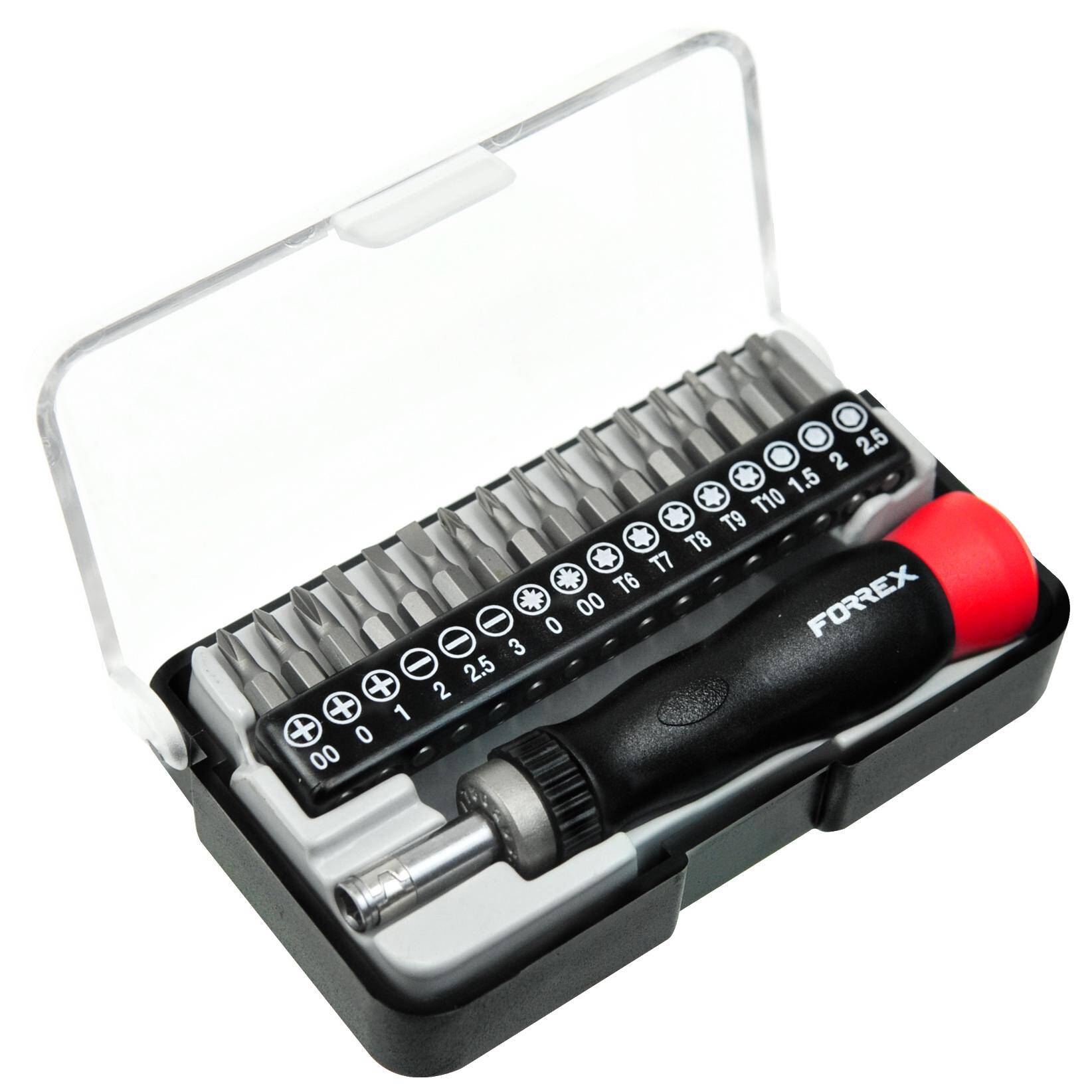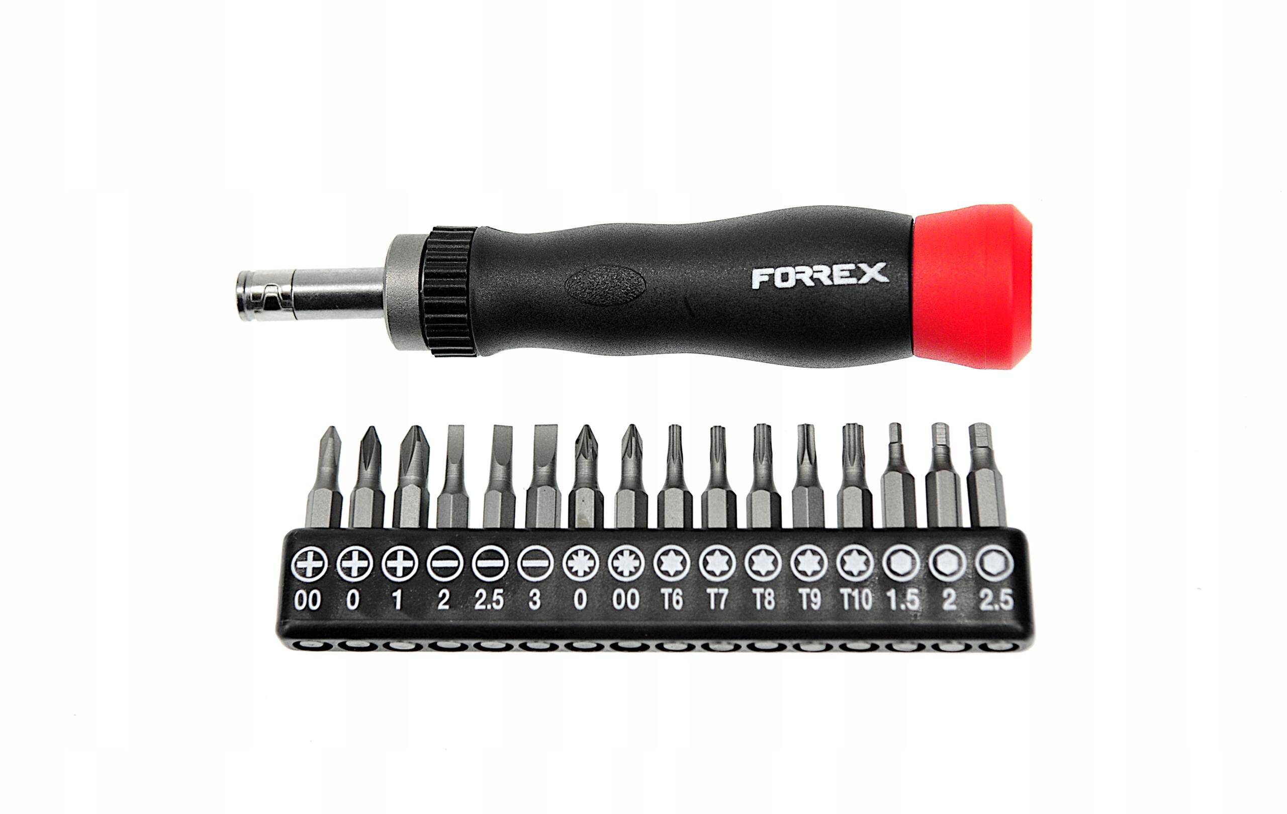 • zestaw 16 końcówek wkrętakowych + wkrętak z grzechotką