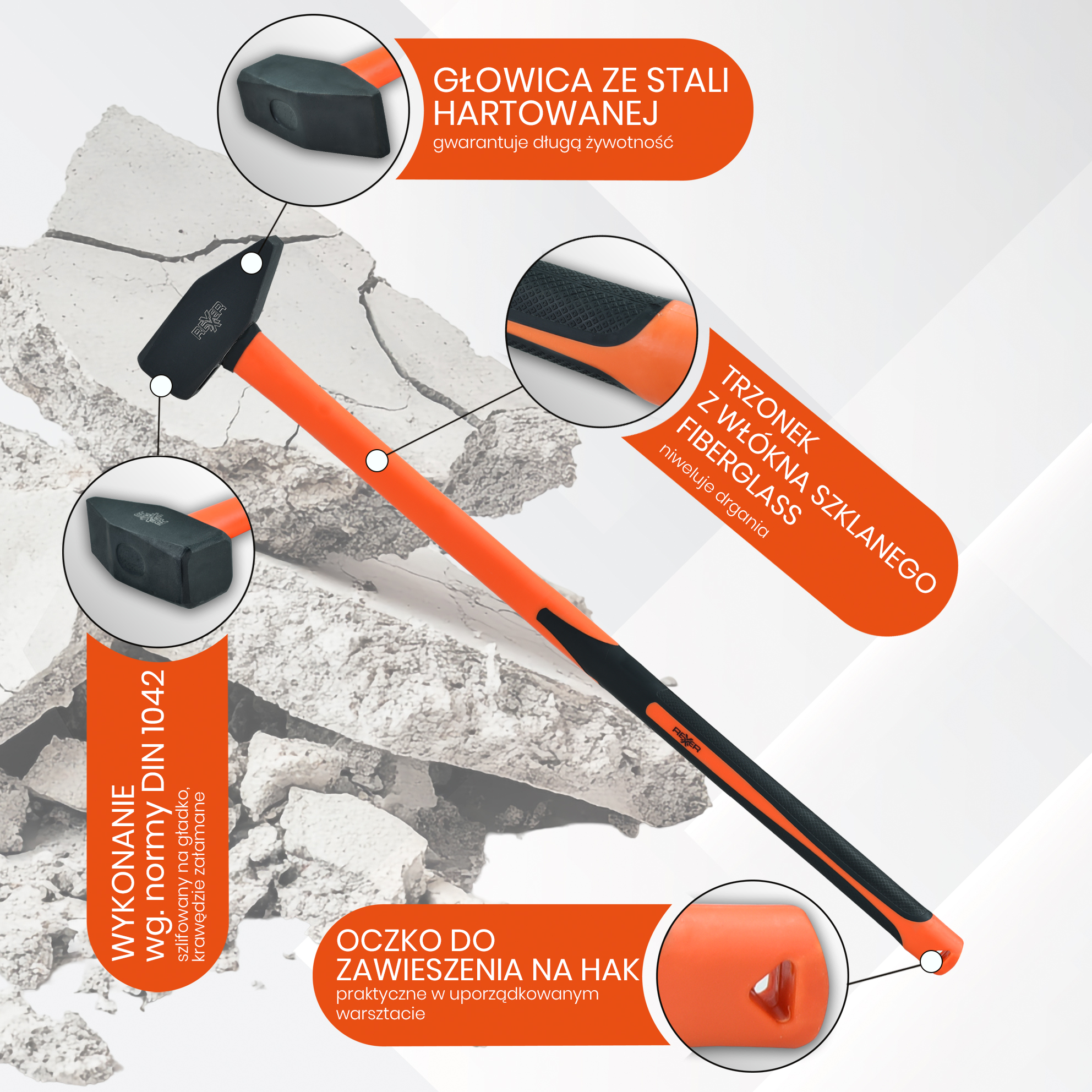 Młotek ślusarski 5000 g trzonek z włókna szklanego