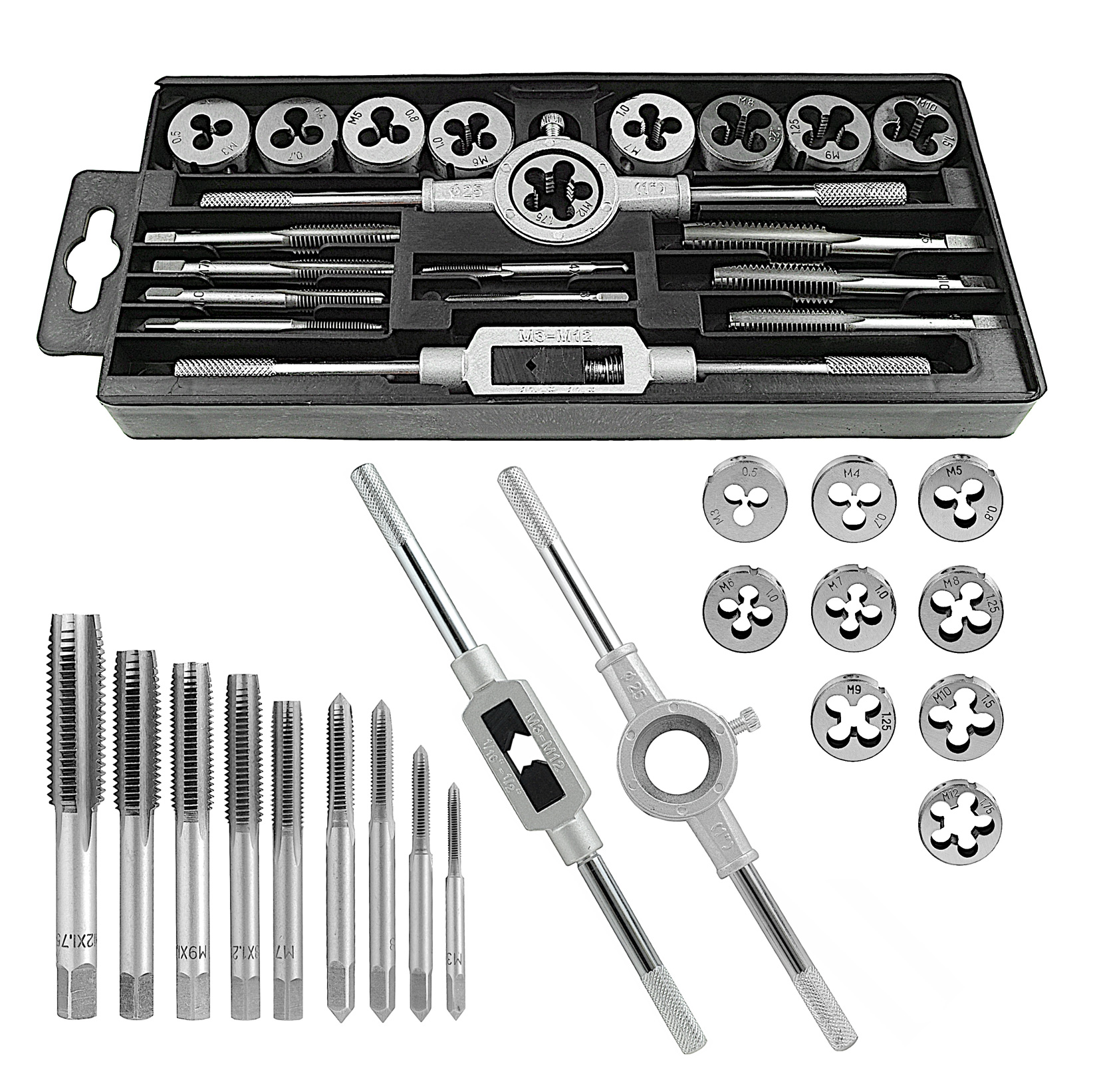 Narzynki i gwintowniki M3-M12, 20 sztuk