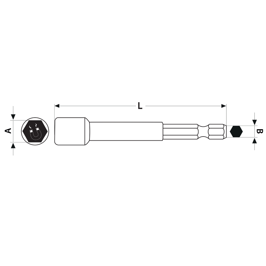 Wykonana z trwałej stali chromowo-wanadowej (CrV), nasadka jest odporna na korozję, uszkodzenia i odkształcenia mechaniczne. Posiada sześciokątny otwór pasujący do standardowych końcówek śrub sześciokątnych oraz wbudowany magnes, który pewnie utrzymuje metalowe elementy, takie jak śruby i wkręty. Dzięki temu narzędziu wkładanie i wyjmowanie śrub jest łatwiejsze i bardziej efektywne, a magnes zapobiega ich wypadaniu i ułatwia precyzyjne umieszczanie w otworach. Pozwala to na szybkie i bezproblemowe mocowanie lub demontowanie śrub z różnych powierzchni i obiektów.