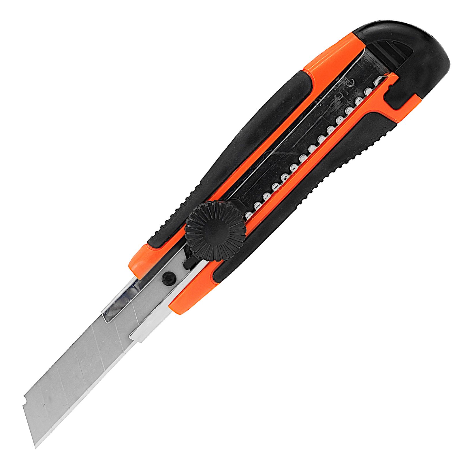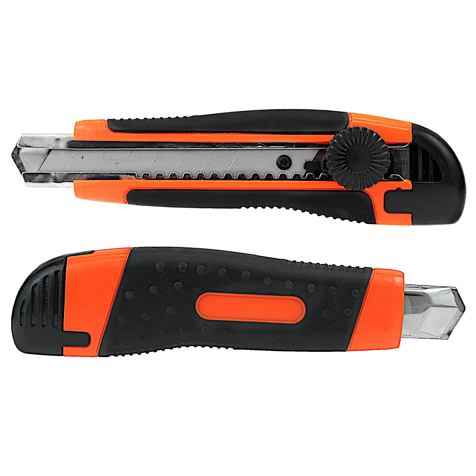 Nóż z chowanym i łamanym ostrzem to uniwersalne narzędzie. Z jego pomocą przetniesz sprawnie papier, tkaninę, tworzywa sztuczne i tym podobne materiały. Chowane ostrze znacznie zmniejsza ryzyko przypadkowych skaleczeń. Obudowa wykonana z plastiku, metalowe prowadzenie ostrza oraz gumowe wykończenie uchwytu znacznie podnosi komfort pracy.