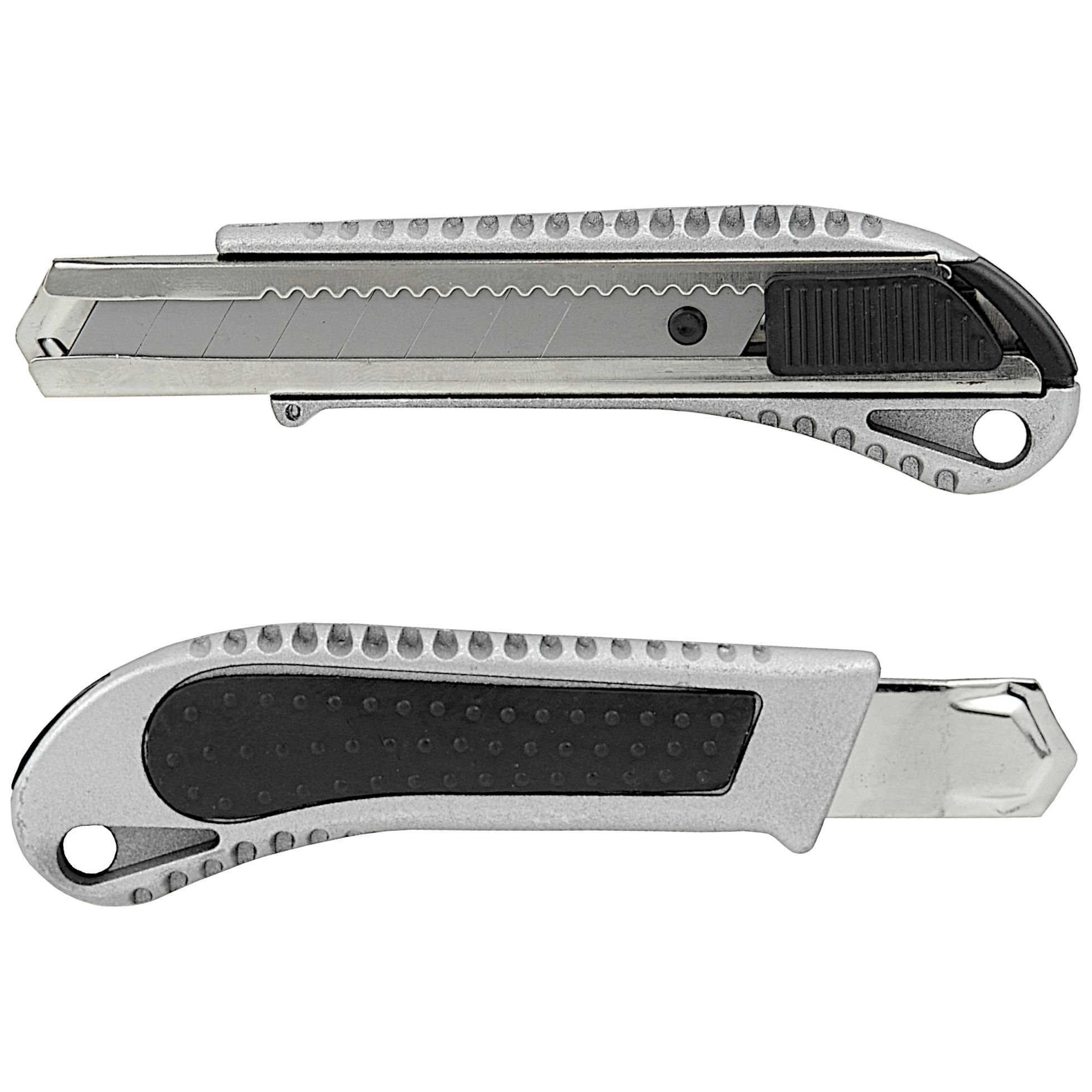 Nóż z łamanym ostrzem 18 mm, metalowy korpus + 10 ostrzy wymiennych 18 mm