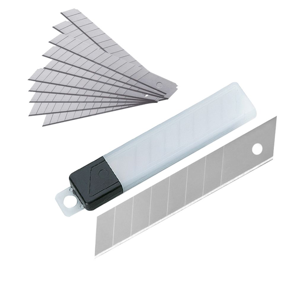 W zestawie znajduje się 10 wymiennych ostrzy o szerokości 18 mm. Każde ostrze posiada segmenty tnące, które po stępieniu można łatwo odłamać, uzyskując nową, ostrą krawędź.
