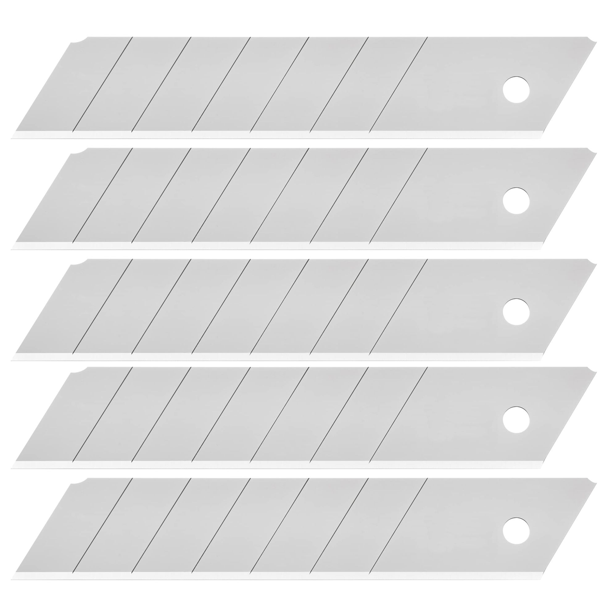 W zestawie znajduje się 5 wymiennych ostrzy 25 mm, które można łatwo wymieniać. Ostrza są segmentowe – po stępieniu wystarczy odłamać zużytą część, by dalej korzystać z ostrej krawędzi.