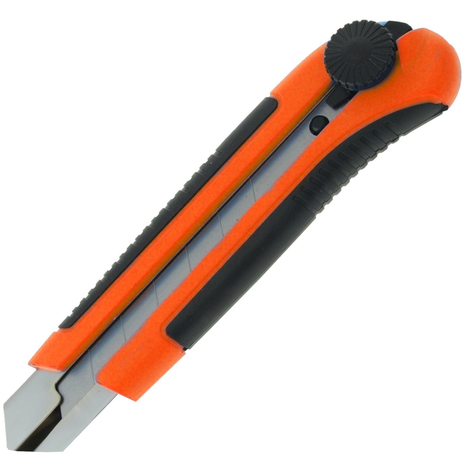 Nóż z chowanym i łamanym ostrzem to uniwersalne narzędzie do cięcia papieru, tkanin, tworzyw sztucznych i innych materiałów. Dzięki możliwości chowania ostrza znacznie zmniejsza się ryzyko przypadkowych skaleczeń. Obudowa wykonana jest z tworzywa sztucznego, a metalowe prowadzenie ostrza i blokada za pomocą pokrętła poprawiają komfort pracy.
