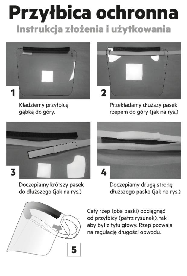 Uwaga, maseczka medyczna nie jest dołączona, w ofercie jest wyłącznie przyłbica wraz z szybką i paskiem do zamocowania.