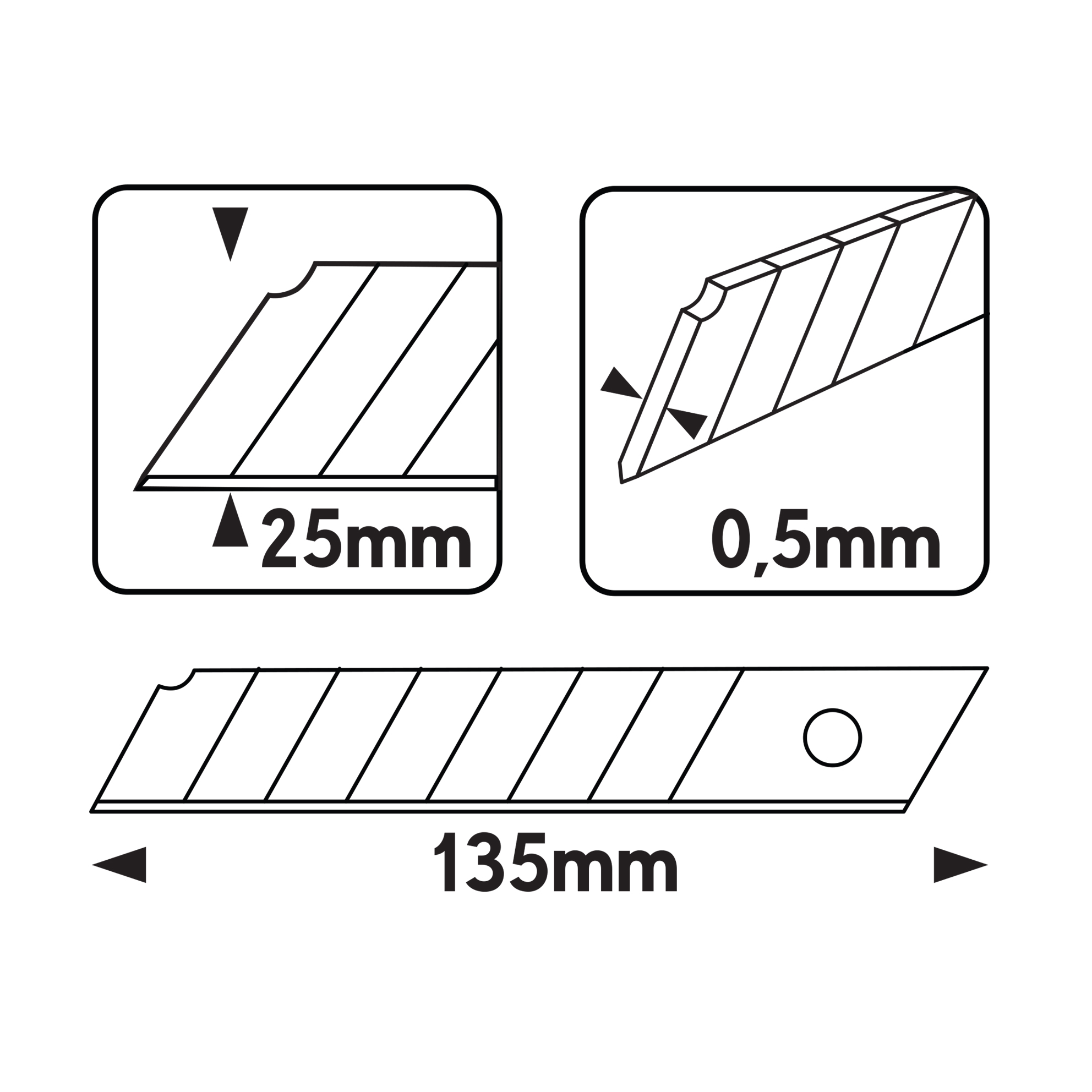 Ostrza są elementem wymiennym noży, w których istnieje możliwość takiej wymiany. Nadają się do cięcia papieru, tkanin, tworzyw sztucznych. Opakowanie zawiera pięć ostrzy, w których po stępieniu części tnącej możemy ją odłamać i ponownie dysponować ostrym ostrzem.
