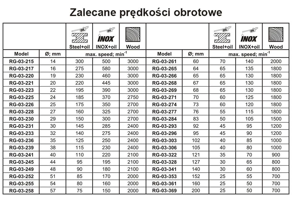 • Zakres otwornic: 32-200 mm
