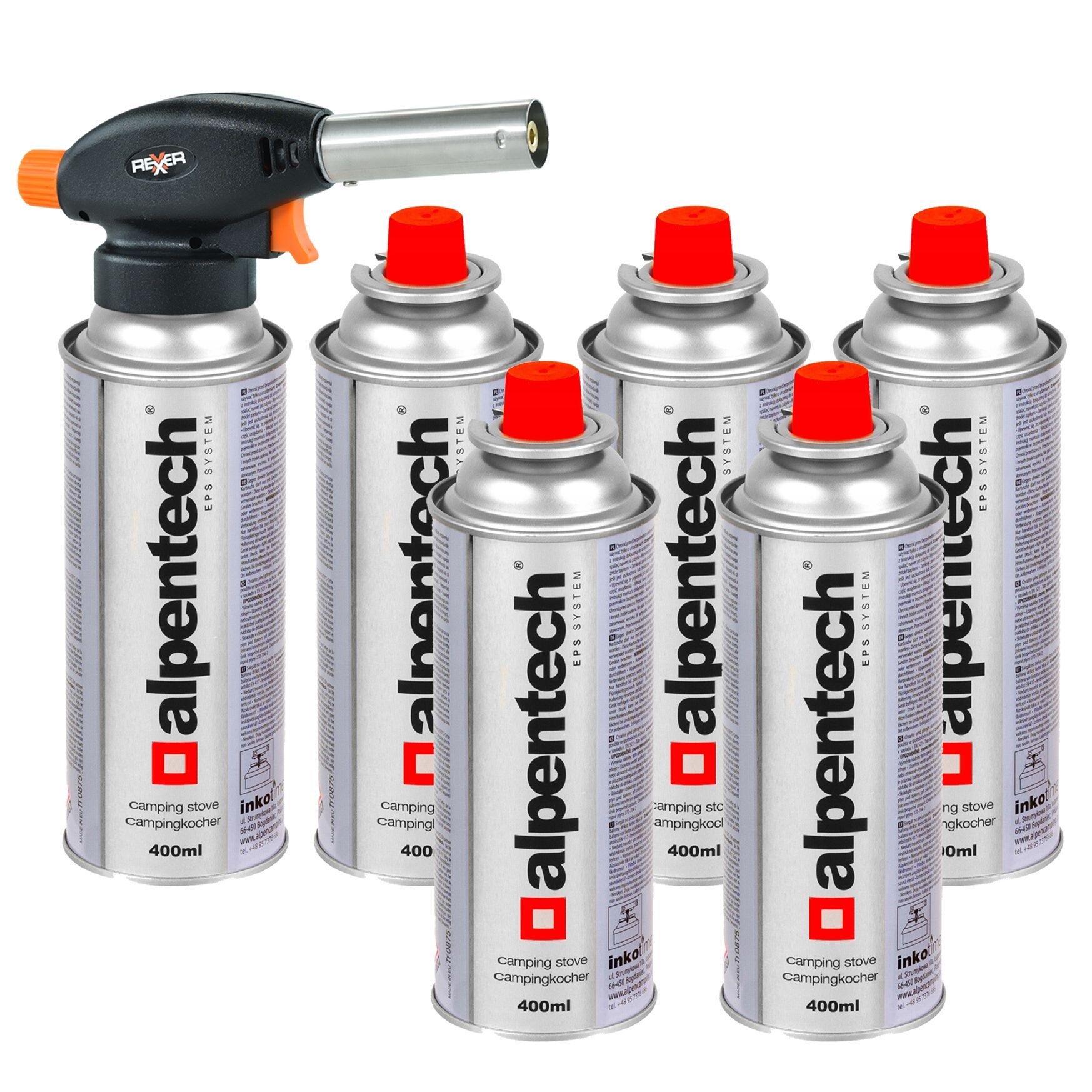 Palnik gazowy z zapłonem piezoelektrycznym 1100 W + kartusz z gazem butan 220 g (6 sztuk)