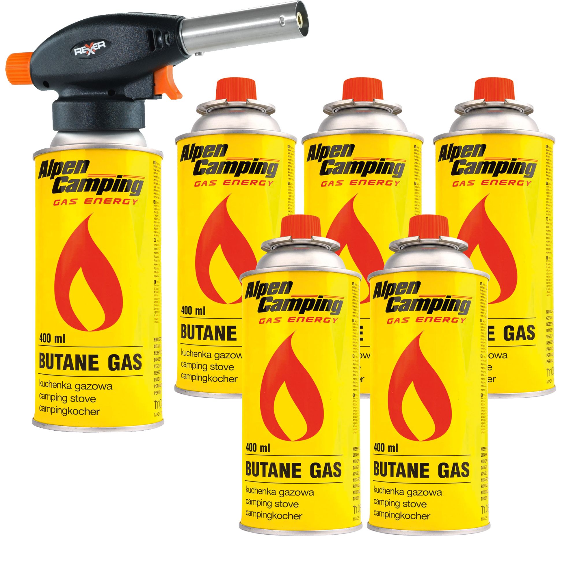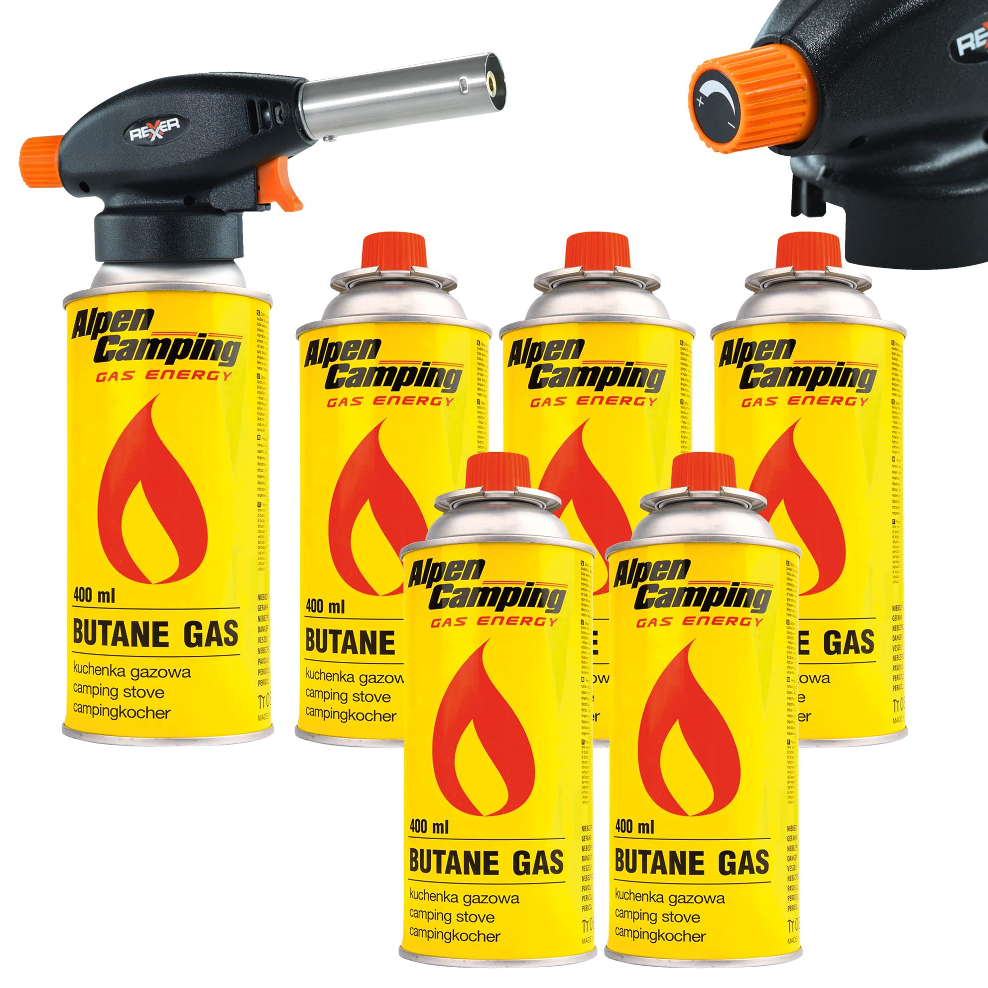 Palnik gazowy z zapłonem piezoelektrycznym 1100 W + kartusz z gazem izobutan 227 g (6 sztuk)