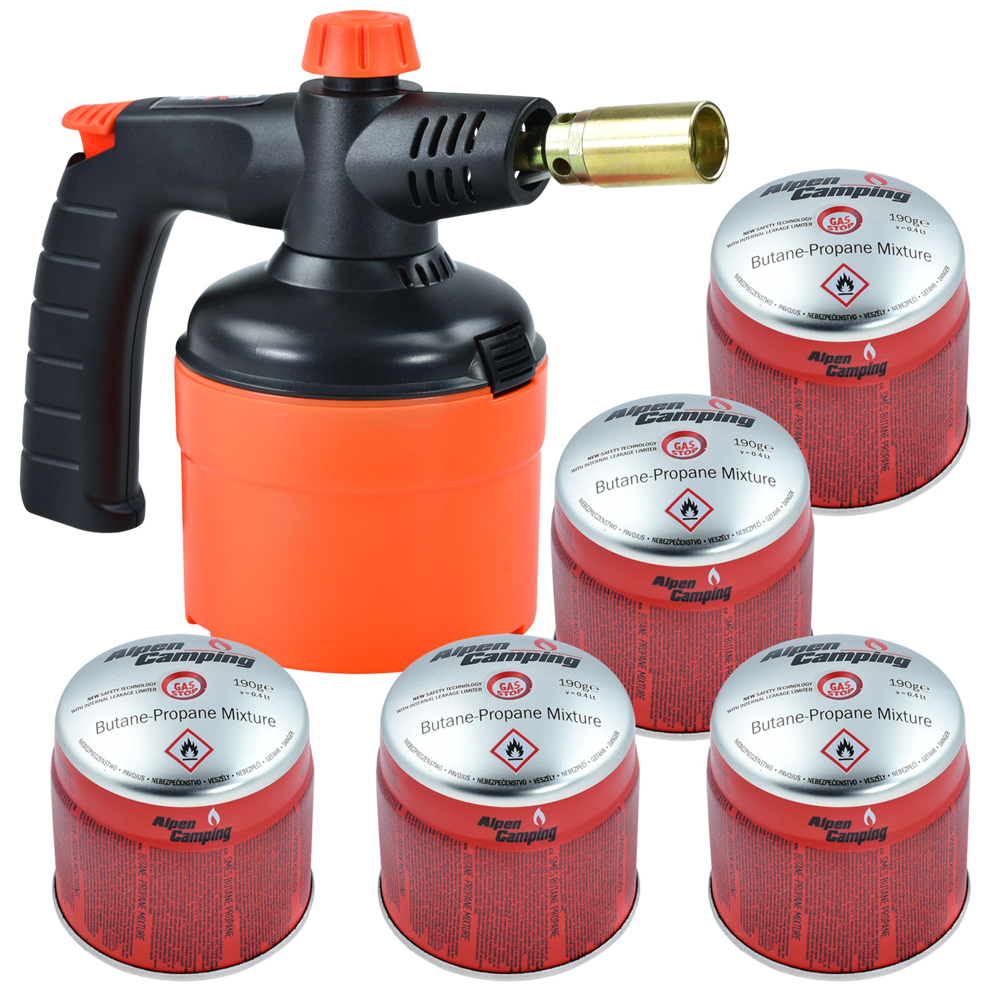 Palnik gazowy z zapłonem piezoelektrycznym 1700 W Basic + kartusz z gazem butan 190 g (5 sztuk)
