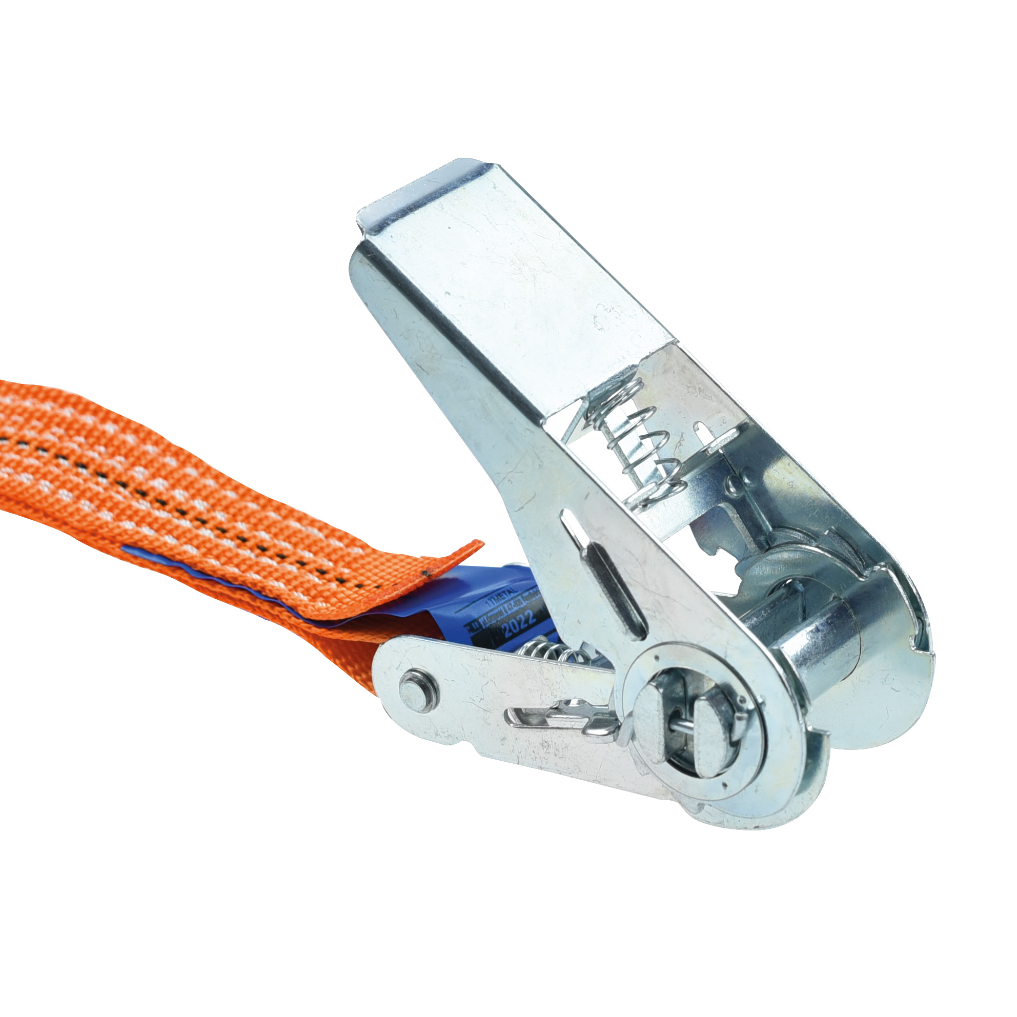 Pas transportowy z napinaczem to najczęściej stosowany pas w transporcie. To solidny i pewny sposób na zabezpieczenie ładunku. Długość to 3 metry. Pasy zostały wyprodukowane na terenie Unii Europejskiej zgodnie z normą EN 12195-2 2001. Składa się z dwóch części: napinacza – grzechotki i części opasującej. Grzechotka posiada wygodną rączkę dopasowaną do ręki i wysokiej jakości system zapadkowy. Zakończona wytrzymałym hakiem. Część opasująca to przede wszystkim wytrzymała taśma odporna na oleje, smary oraz różne niesprzyjające warunki atmosferyczne zakończona wytrzymałym hakiem. Na każdej części pasa znajdują się niebieskie metki informujące o produkcie oraz instrukcja montażu.