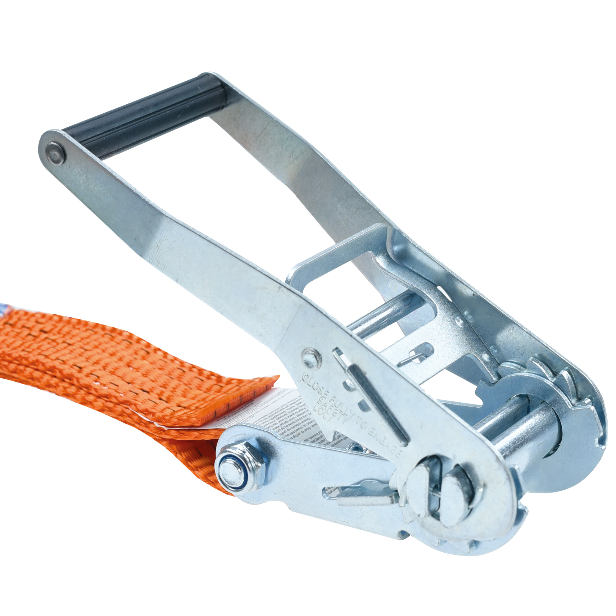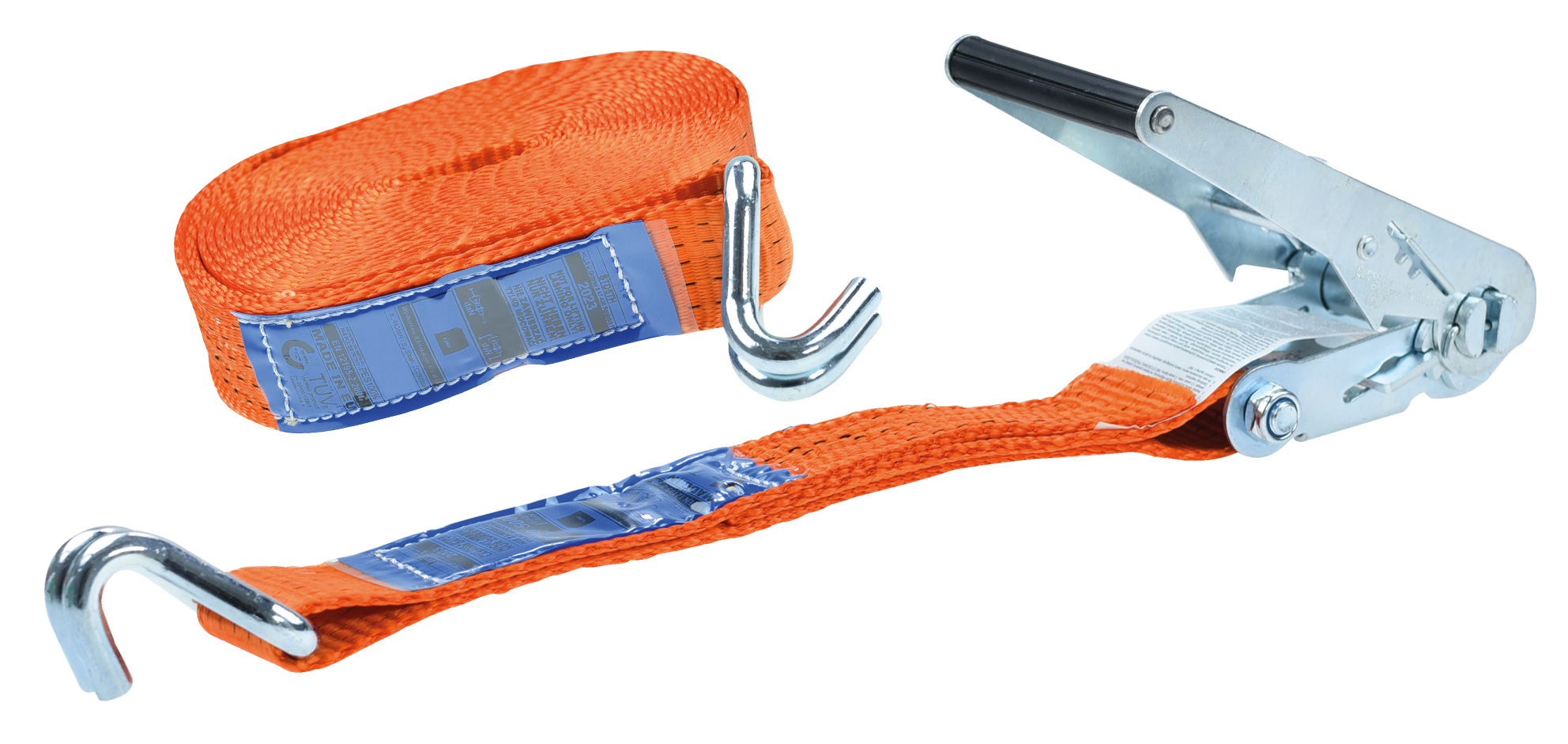 Pas transportowy z napinaczem jest najczęściej stosowanym pasem w transporcie. To solidny i pewny sposób na zabezpieczenie ładunku. Długość to 10 metrów. Pasy zostały wyprodukowane na terenie Unii Europejskiej zgodnie z normą EN 12195-2 2001. Składa się z dwóch części: napinacza – grzechotki i części opasującej. Grzechotka posiada wygodną rączkę dopasowaną do ręki i wysokiej jakości system zapadkowy. Zakończona wytrzymałym hakiem. Część opasująca to przede wszystkim wytrzymała taśma odporna na oleje, smary oraz różne niesprzyjające warunki atmosferyczne zakończona wytrzymałym hakiem. Na każdej części pasa znajdują się niebieskie metki informujące o produkcie oraz instrukcja montażu.