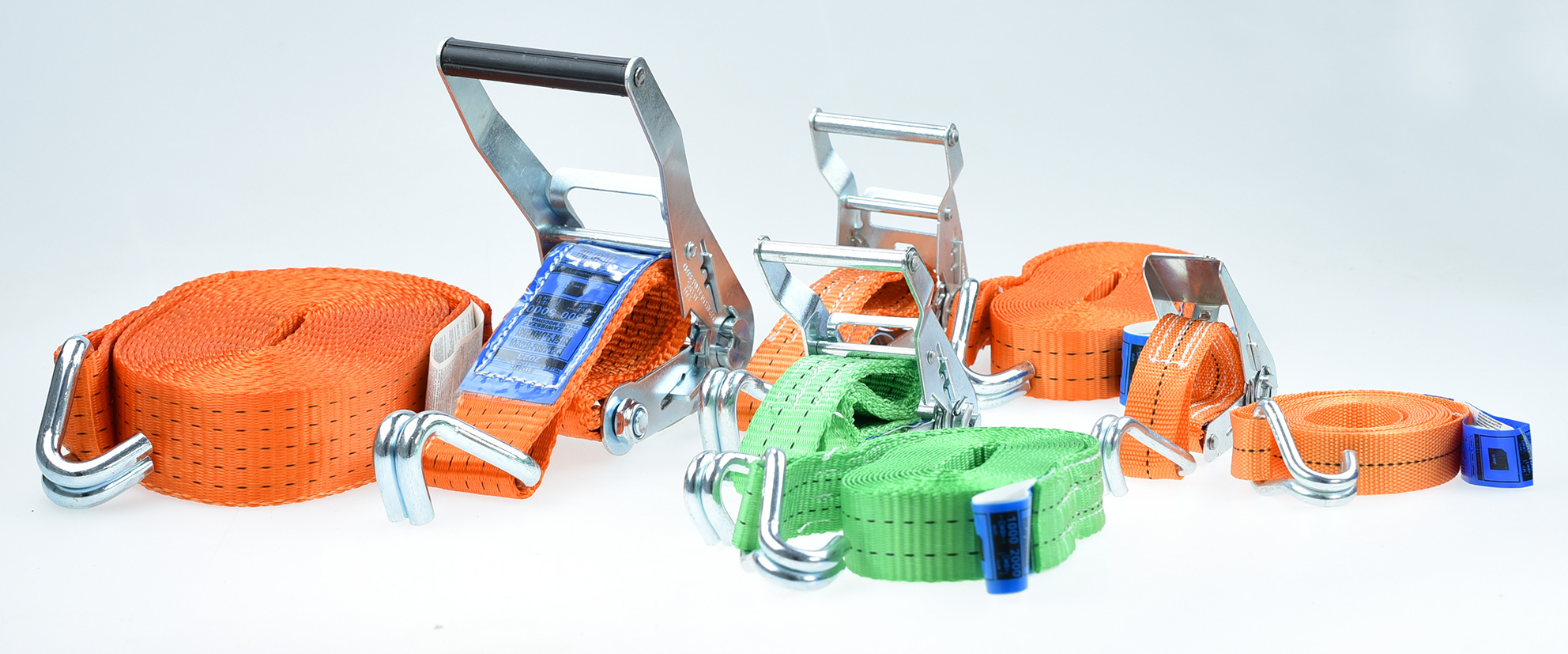 Pas transportowy z napinaczem jest najczęściej stosowanym pasem w transporcie. To solidny i pewny sposób na zabezpieczenie ładunku. Długość to 8 metrów. Pasy zostały wyprodukowane na terenie Unii Europejskiej zgodnie z normą EN 12195-2 2001. Składa się z dwóch części: napinacza – grzechotki i części opasującej. Grzechotka posiada wygodną rączkę dopasowaną do ręki i wysokiej jakości system zapadkowy. Zakończona wytrzymałym hakiem. Część opasująca to przede wszystkim wytrzymała taśma odporna na oleje, smary oraz różne niesprzyjające warunki atmosferyczne zakończona wytrzymałym hakiem. Na każdej części pasa znajdują się niebieskie metki informujące o produkcie oraz instrukcja montażu.