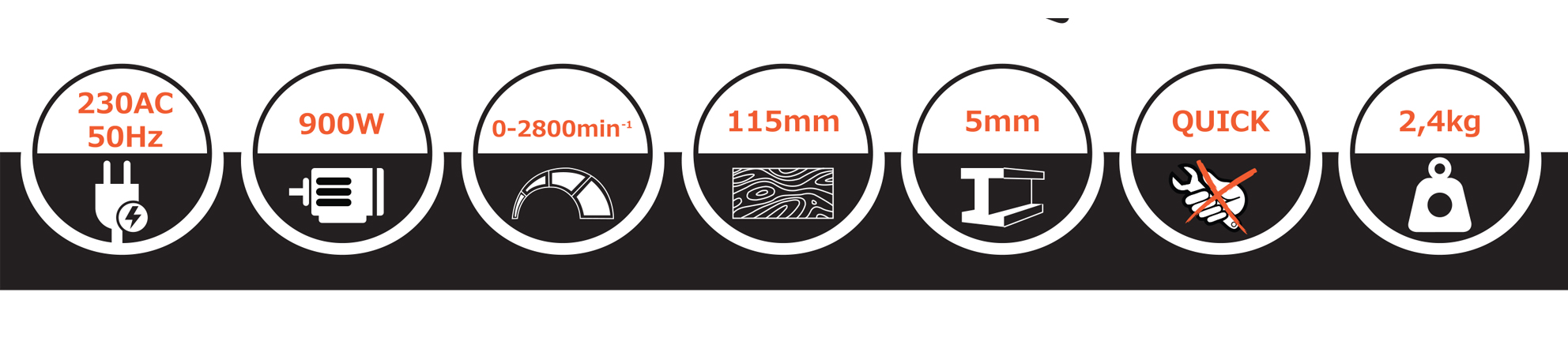 • Maksymalna głębokość cięcia: drewno 115 mm / aluminium 60 mm / stal 5 mm